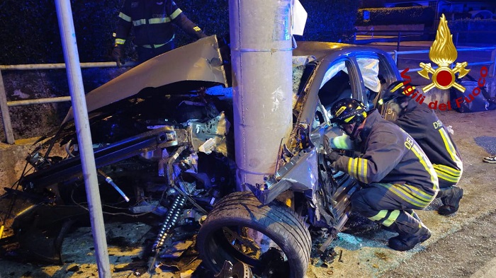 Sul posto sono intervenuti i Vigili del Fuoco, impegnati nelle complesse operazioni di estricazione del conducente, un giovane di circa 30 anni, rimasto incastrato tra le lamiere a causa delle gravi condizioni della vettura, aperta letteralmente in due.