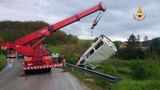 Un pulmino si è ribaltato, oggi nel primo pomeriggio, a Nocera Umbra, in località Case Basse. A bordo 9 persone. L'autista del mezzo, per cause ancora da stabilire, ha perso il controllo del mezzo ed è finito in fondo ad una scarpata. Sul posto per i primi soccorsi, il personale sanitario del 118 che ha ritenuto necessario prestare cure all'autista, in loco, e ricoverare 4 persone presso il vicino ospedale di Foligno. Presenti anche i Vigili del fuoco con 12 unità e 5 mezzi, tra cui un'autogrù con la quale si sta provvedendo alla rimozione dell'autobus.