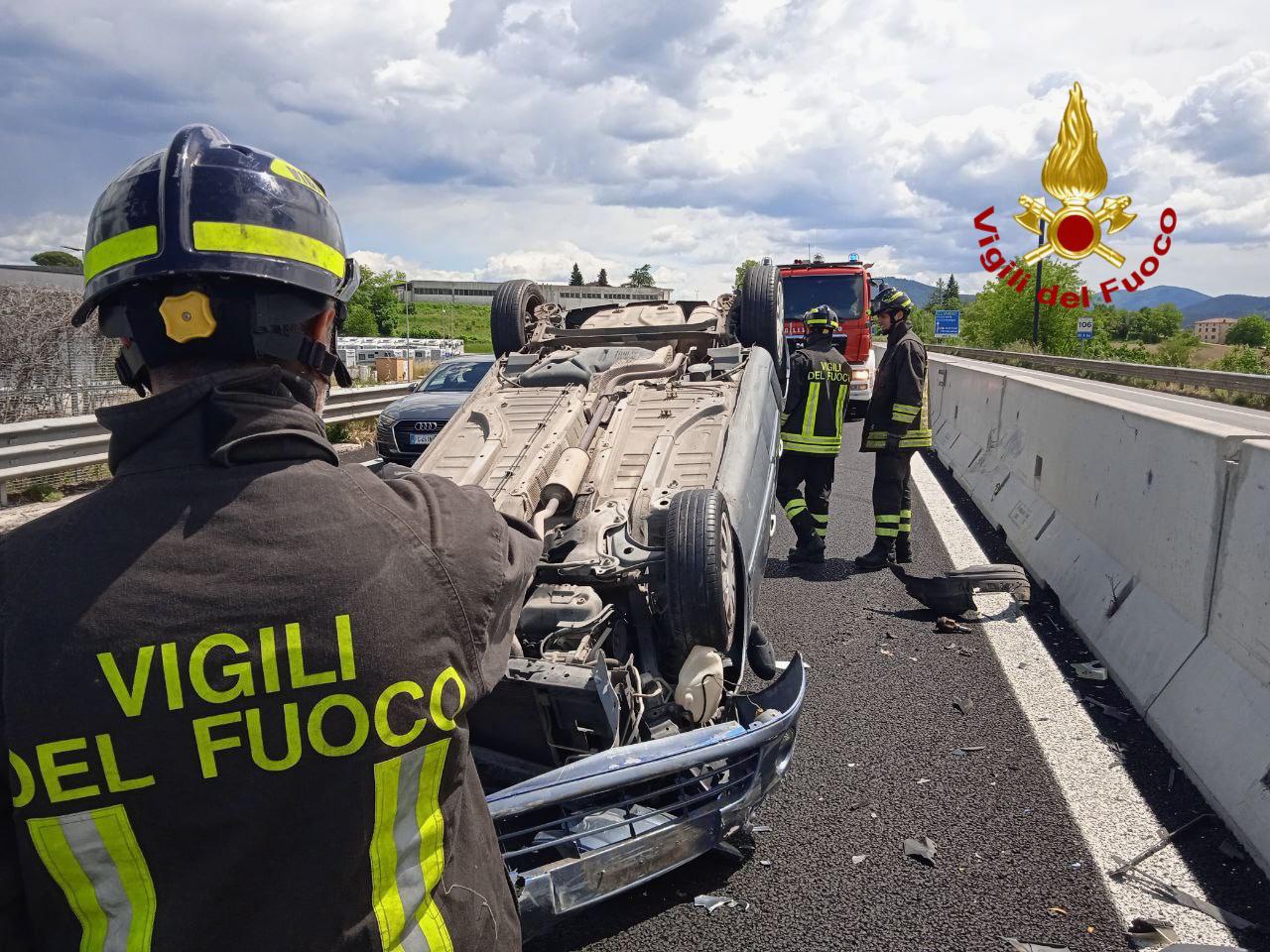 Un’autovettura dopo aver sbandato si è capovolta urtando il new jersey. La conducente è stata estratta dall’auto e portata all’ ospedale di Città di Castello. Sul posto anche la Polizia Stradale.