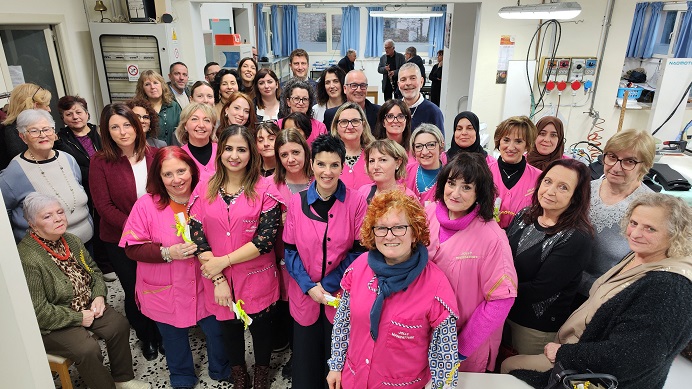 Dalle titolari Valeria Ganganelli e Paola Cii che guidano l’azienda insieme a Stefano Ganganelli (il marito di Paola, unica eccezione maschile) tutte le 20 dipendenti sono donne. Un pezzo di storia sociale e produttiva che il Comune di San Giustino, in collaborazione con il movimento “Liberedessere”, alla vigilia della Giornata Internazionale della Donna, ha voluto celebrare come si conviene, ieri pomeriggio (6 marzo), proprio in azienda, consegnando una targa ricordo ai titolari ed una pergamena ad ogni dipendente.