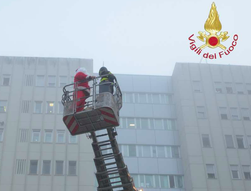 Con qualche giorno di anticipo sul Natale un gruppo di Vigili del Fuoco liberi dal servizio ha fatto visita ai bambini ricoverati all’Ospedale di Perugia nel reparto di Oncoematologia Pediatrica portando con loro il “Babbo Natale” che è arrivato sull’autoscala dei “pompieri”. Per questi bambini affetti da gravi patologie che richiedono da parte loro tanta pazienza, specie durante le terapie, ogni giorno deve essere pieno di attenzioni e calore umano e questa visita è stato un momento certamente diverso che resterà a lungo impresso tra i loro ricordi. Con queste parole il Direttore della struttura Maurizio Caniglia ha salutato i vigili del fuoco