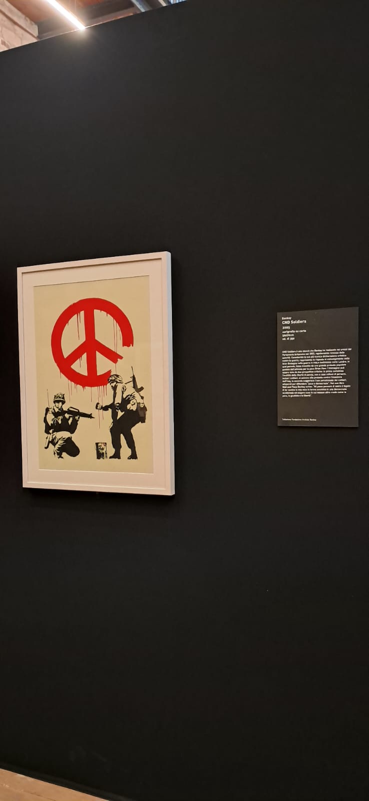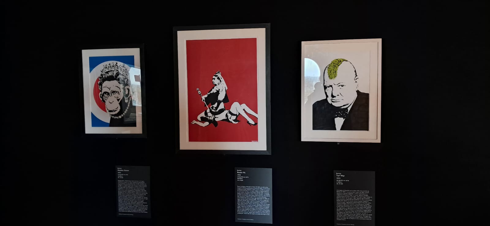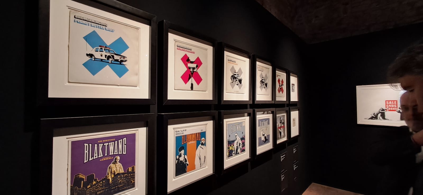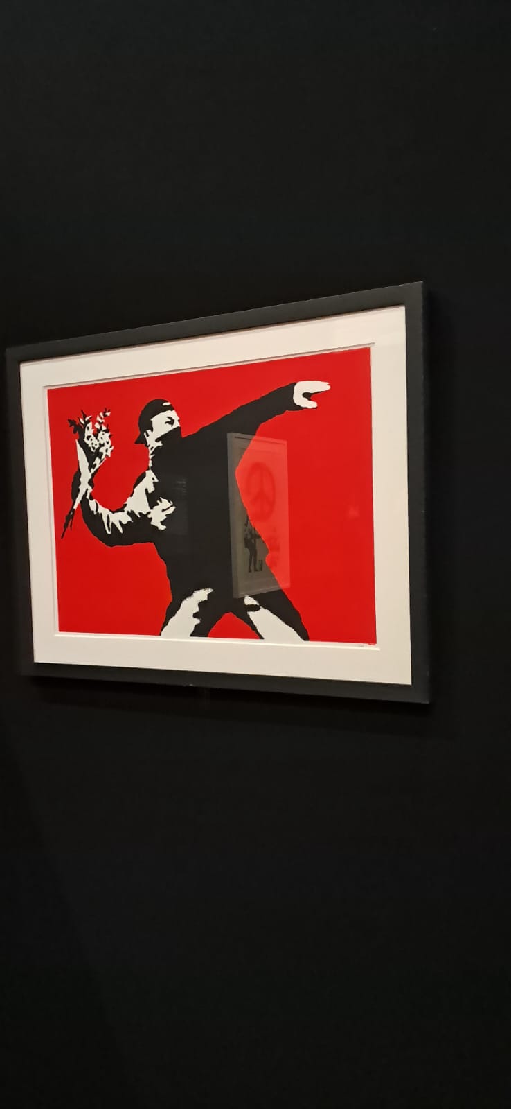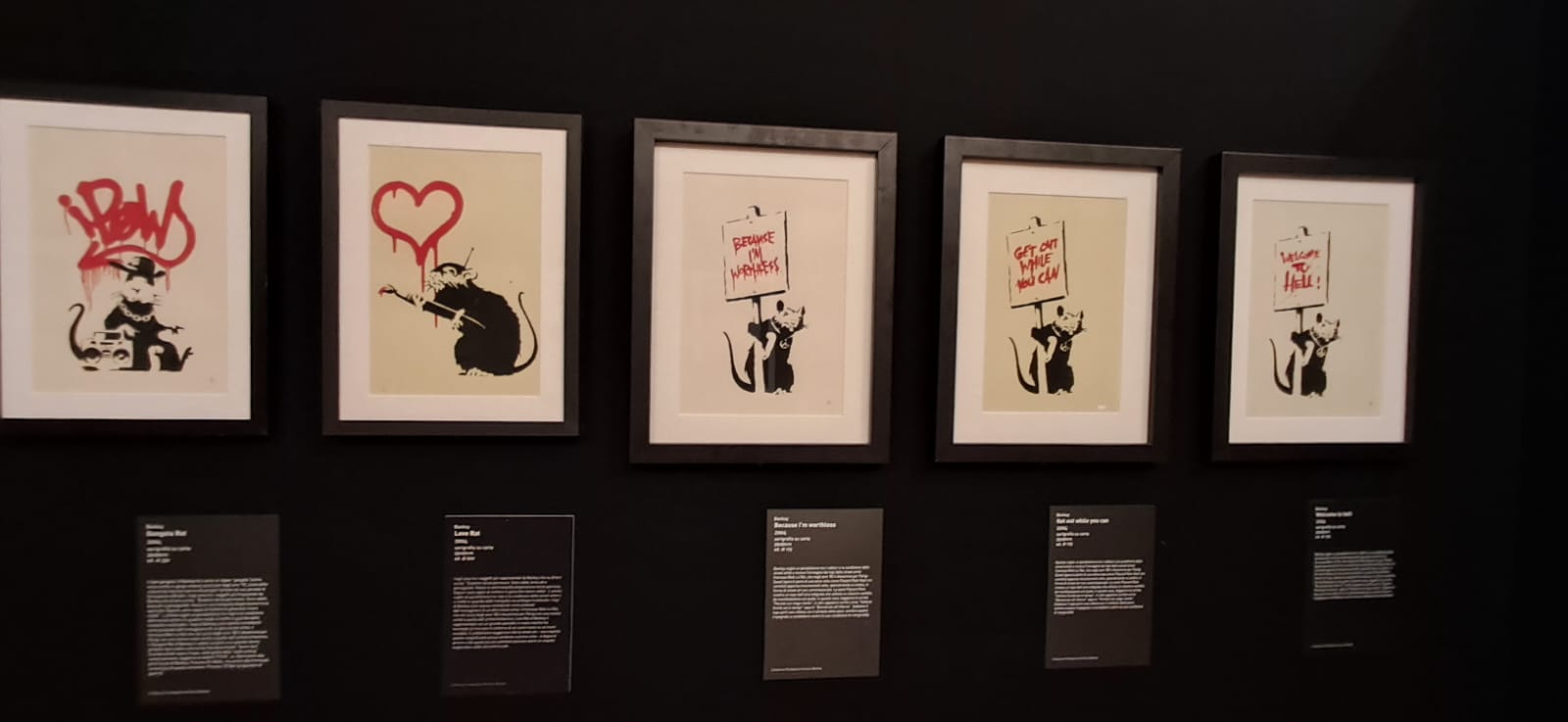 La mostra è divisa in sezioni, ponendo il pubblico di fronte a opere originali, che l’artista ha creato nel suo studio dal 1998 al 2010. Tra queste alcune immagini iconiche e di grande valore, come Flower Thrower, il lanciatore di fiori, e Girl with Balloon, la ragazza con il palloncino rosso a forma di cuore, nella sua versione originale del 2004. Pezzi straordinari ed esclusivi, perché se in molti conoscono il lavoro pubblico di Banksy, pochissimi hanno accesso al suo lavoro prodotto in studio. Materiali che vanno dalle serigrafie originali firmate e numerate prodotte da Pictures On Walls dal 2001 al 2009, all’intera produzione di copertine originali di dischi realizzate per i Blur, Hombre records e Wall of Sound, l’intera videografia di Bansky, poster, libri, t-shirt, fotografie originali, così come opere di artisti che hanno ispirato, collaborato e affiancato l’artista britannico nel suo percorso.
