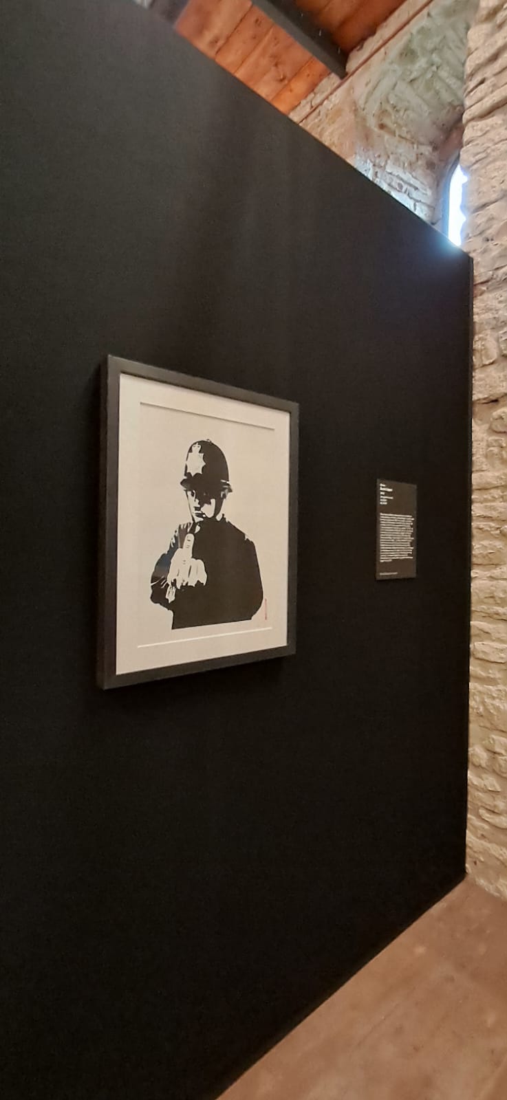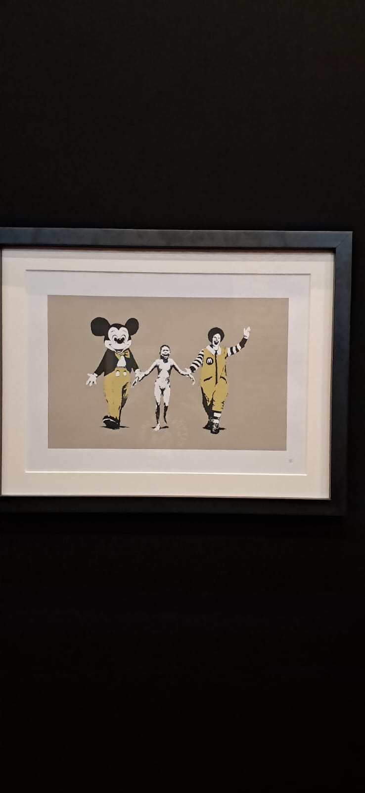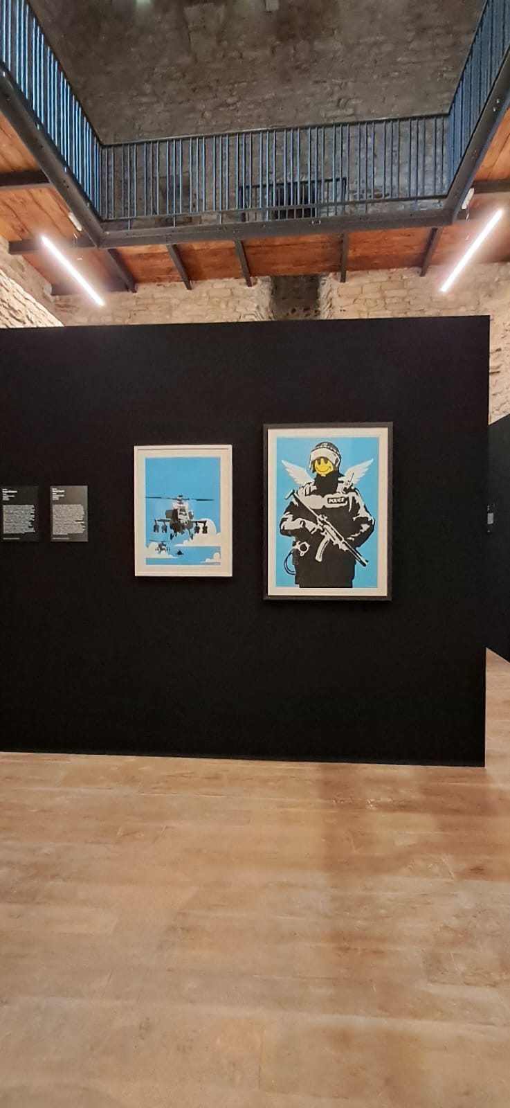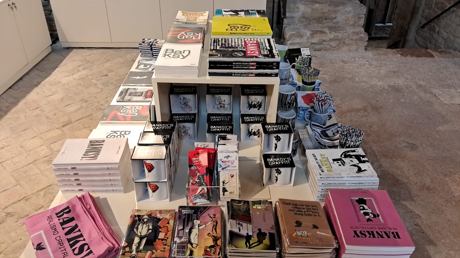 La mostra è divisa in sezioni, ponendo il pubblico di fronte a opere originali, che l’artista ha creato nel suo studio dal 1998 al 2010. Tra queste alcune immagini iconiche e di grande valore, come Flower Thrower, il lanciatore di fiori, e Girl with Balloon, la ragazza con il palloncino rosso a forma di cuore, nella sua versione originale del 2004. Pezzi straordinari ed esclusivi, perché se in molti conoscono il lavoro pubblico di Banksy, pochissimi hanno accesso al suo lavoro prodotto in studio. Materiali che vanno dalle serigrafie originali firmate e numerate prodotte da Pictures On Walls dal 2001 al 2009, all’intera produzione di copertine originali di dischi realizzate per i Blur, Hombre records e Wall of Sound, l’intera videografia di Bansky, poster, libri, t-shirt, fotografie originali, così come opere di artisti che hanno ispirato, collaborato e affiancato l’artista britannico nel suo percorso.