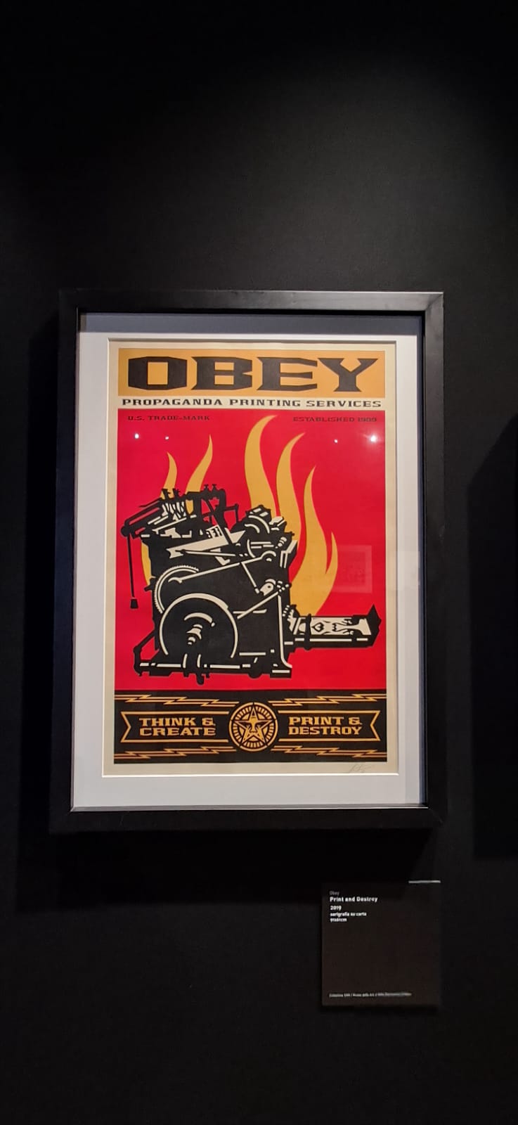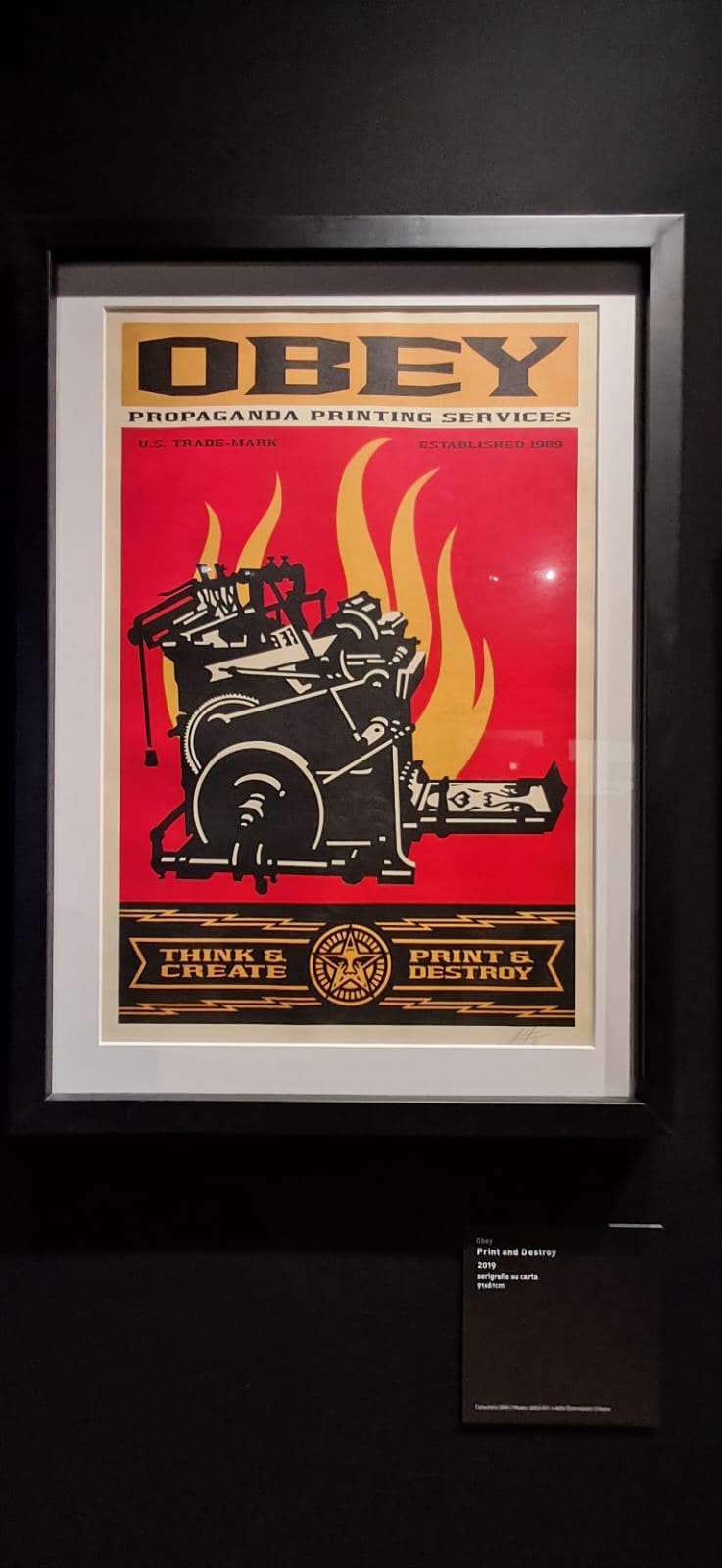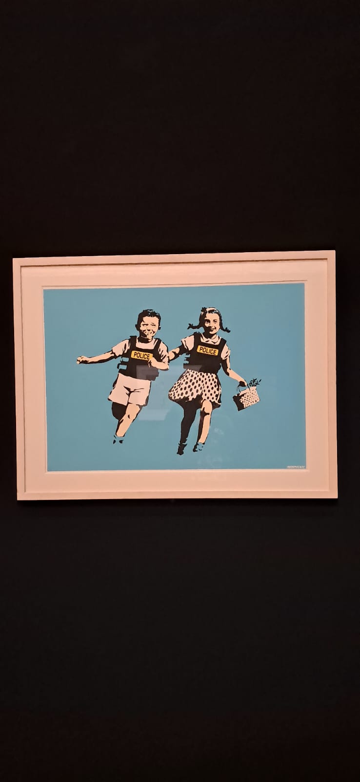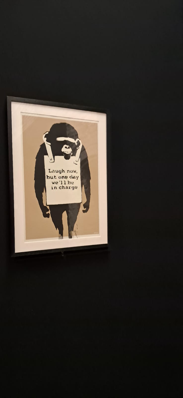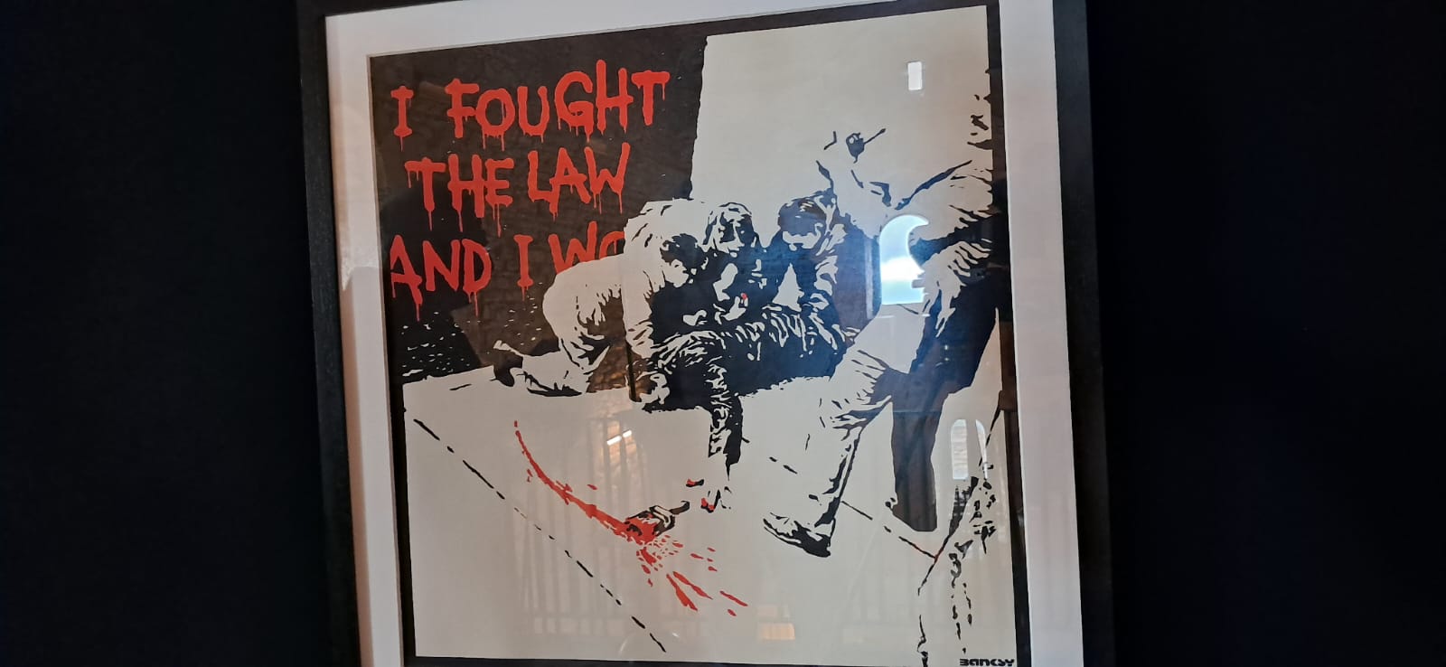 La mostra è divisa in sezioni, ponendo il pubblico di fronte a opere originali, che l’artista ha creato nel suo studio dal 1998 al 2010. Tra queste alcune immagini iconiche e di grande valore, come Flower Thrower, il lanciatore di fiori, e Girl with Balloon, la ragazza con il palloncino rosso a forma di cuore, nella sua versione originale del 2004. Pezzi straordinari ed esclusivi, perché se in molti conoscono il lavoro pubblico di Banksy, pochissimi hanno accesso al suo lavoro prodotto in studio. Materiali che vanno dalle serigrafie originali firmate e numerate prodotte da Pictures On Walls dal 2001 al 2009, all’intera produzione di copertine originali di dischi realizzate per i Blur, Hombre records e Wall of Sound, l’intera videografia di Bansky, poster, libri, t-shirt, fotografie originali, così come opere di artisti che hanno ispirato, collaborato e affiancato l’artista britannico nel suo percorso.