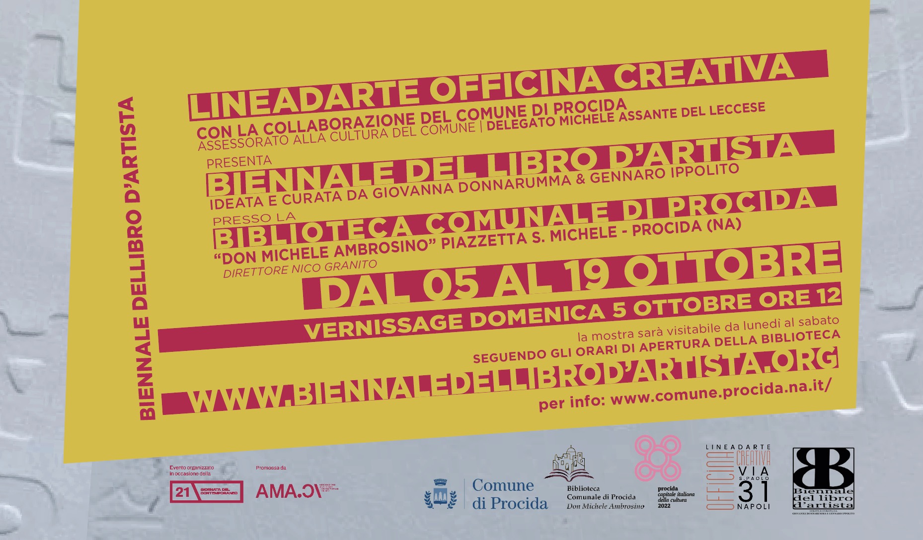 La Biennale del Libro d’Artista torna a Procida alla Biblioteca Comunale di Procida “Don Michele Ambrosino” dal 05 al 19 ottobre, diretta da Nico Granito con la collaborazione del Comune di Procida – Assessorato alla cultura del Comune, delegato Michele Assante del Leccese, confermandosi come uno degli appuntamenti più attesi nel panorama dell’arte contemporanea e dell’editoria creativa. L’evento, giunto alla sua VIIª edizione, riunisce artisti, collezionisti e appassionati da tutto il mondo per celebrare il libro come opera d’arte, luogo di sperimentazione e veicolo di idee.