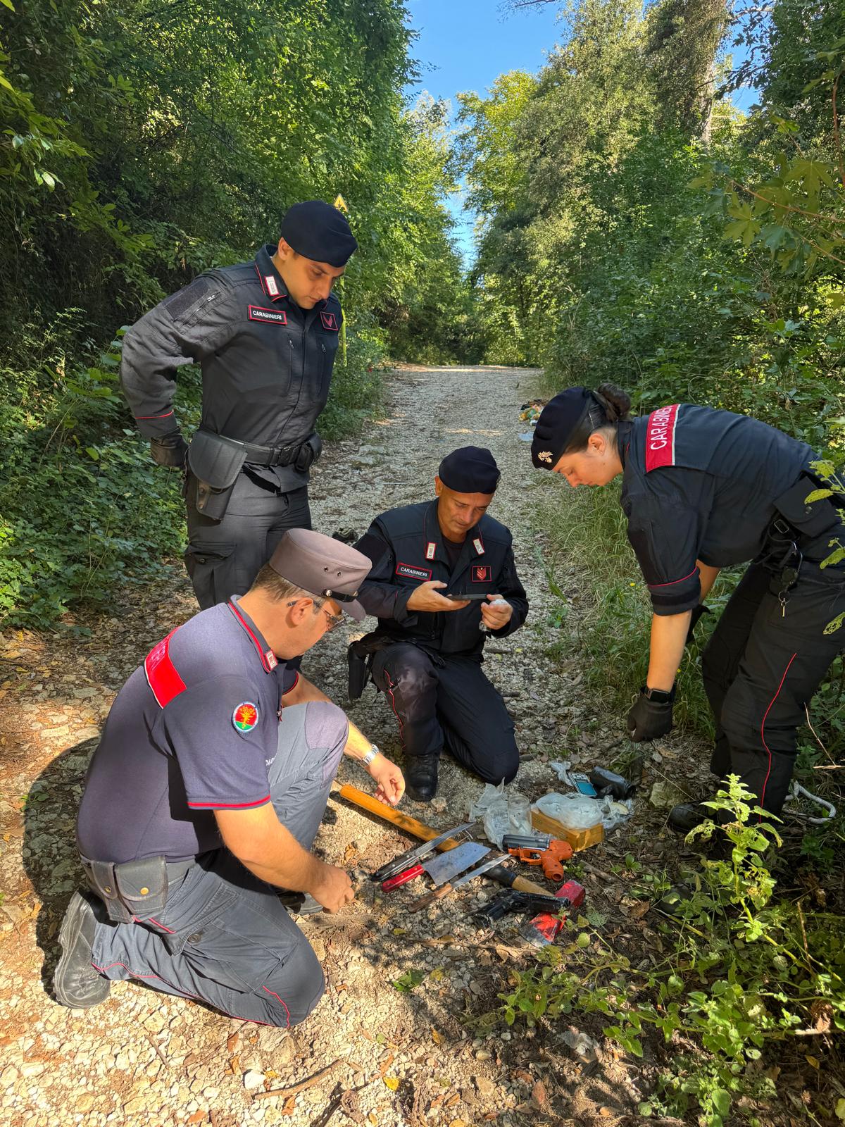 Nel corso dell’attività, pur non essendo stati rintracciate persone sospette, i militari hanno recuperato e sequestrato 73 grammi di hashish e 24 di cocaina, questi ultimi già suddivisi in dosi, rinvenendo inoltre vari armi bianche, tra cui coltelli, mannaie e un’ascia nonché una pistola a salve, perfetta replica di un’arma reale, priva del tappo rosso. Il materiale trovato, utile a formare i consueti “bivacchi” di fortuna, è stato raccolto per lo smaltimento dall’A.S.M. di Terni. Servizi di questa portata saranno ripetuti nelle prossime settimane per contrastare il fenomeno dello spaccio nelle aree boschive periferiche di Terni e di altre località della Provincia.
