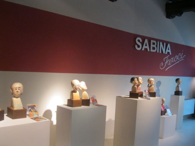 Dopo essersi diplomata nel 1990 all’Istituto d’Arte di Firenze, Sabina Feroci frequenta l’I.S.I.A. di Urbino, per poi trasferirsi a Belfast dove nel 1994 si diploma con specializzazione in illustrazione all’Art College University of Ulster. È l’anno in cui fa ritorno in Italia cominciando un’intensa collaborazione con il “Teatro di Figura” di Firenze e Prato, per il quale realizza sia i personaggi di scena che le immagini delle locandine. Da qui nasce nella Feroci la necessità di approfondire lo studio relativo alla cartapesta; unendo la grafica con l’esperienza della realizzazione di figure di scena, l’artista dà vita ad un connubio vincente tra modernità e tradizione, che sfocia nei suoi irresistibili e pittoreschi personaggi di cartapesta. “Alcune delle mie sculture sono chiamate un po’ genericamente ‘scarabocchi’ perché nascono da delle idee e da dei disegni molto liberi” ha continuato a spiegare la Feroci.