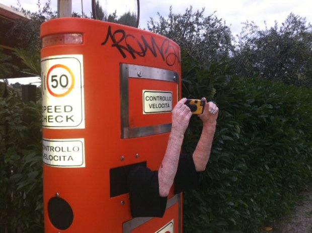 Arte o provocazione? – Erre, questa l'unica traccia di sé che ha lasciato l'autore, ha comunque operato con una certa cura, dai fori della colonnina spuntano due braccia di carta pesta perfettamente realizzate e realistiche. Tra le mani del “manichino” una macchinetta fotografica usa e getta della più nota azienda produttrice. Resta solo da chiedersi se si tratti di un'insolita protesta per la massiccia presenza di speed ceck oppure di una rilettura artistica di un elemento oramai assimilato nell'arredo urbano. L'altra ipotesi è che possa essere un ben organizzato scherzo di Halloween , infatti il pupazzo è comparso proprio a ridosso della “notte delle streghe”. Adesso non resta che attendere che ad accorgersene siano anche gli addetti del Comune, per vedere se con ironia decideranno di lasciarlo lì dove si trova oppure verrà rimosso.