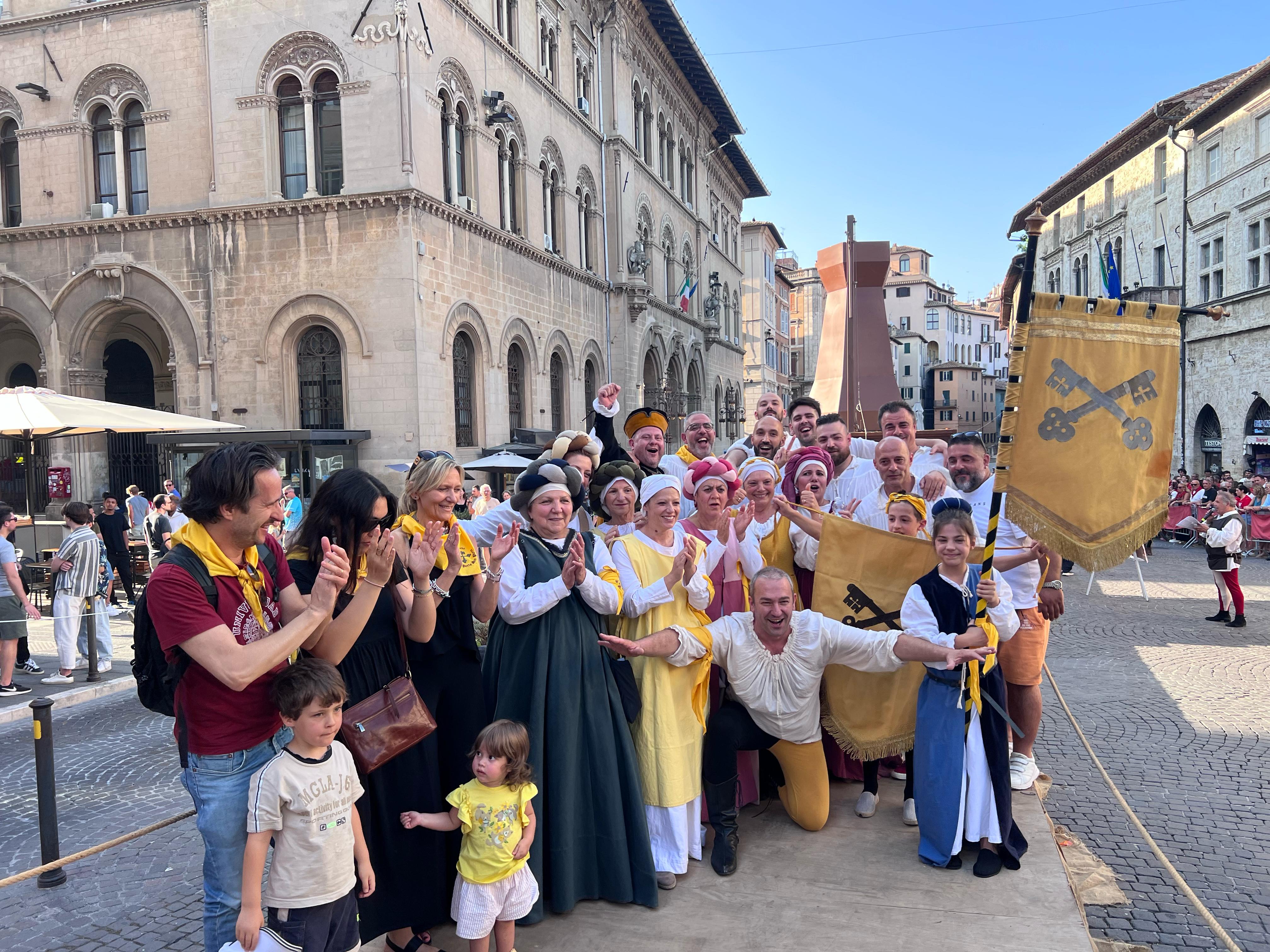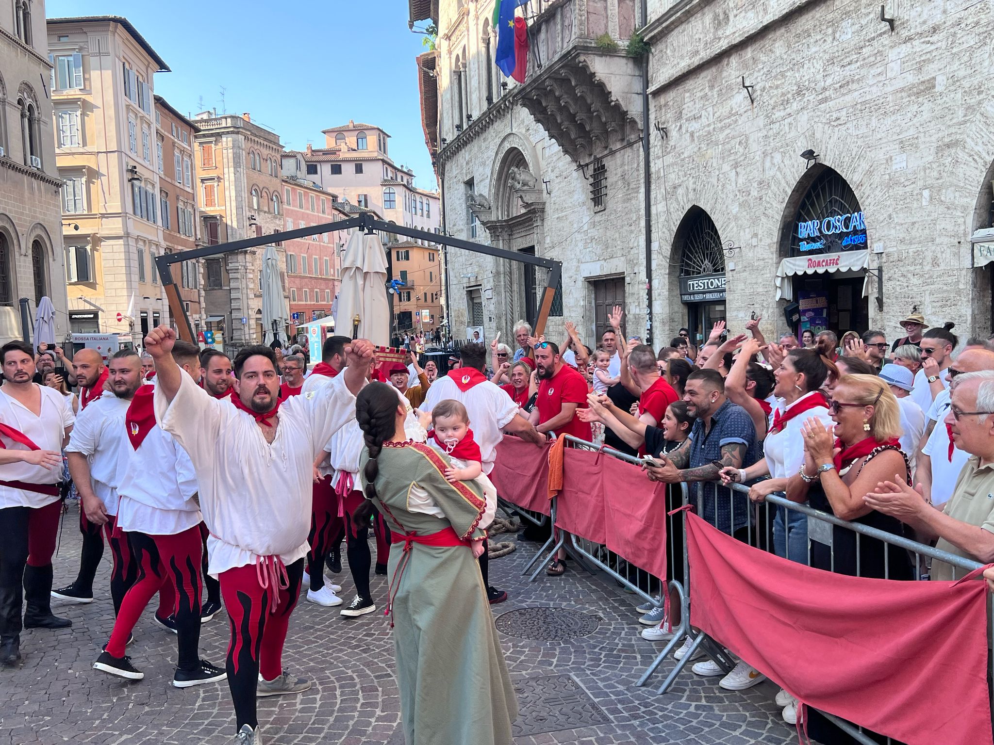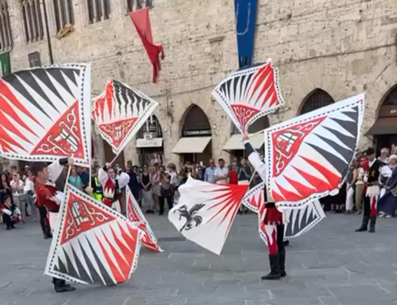 Oggi, domenica, alle 18.45 la Corsa del Drappo premierà la velocità nella staffetta che seguirà Il Gran Corteo Storico, cuore della manifestazione. Anche il Corteo, o meglio l’allegoria che ogni Rione rappresenterà, apporterà punteggio in base ad aderenza storica, interpretazione e scenografia del tema di quest’anno: “Del potere e dei poteri: potere sacro e temporale prima e dopo Braccio”; insieme ai Rioni sfileranno anche le delegazioni ospiti.