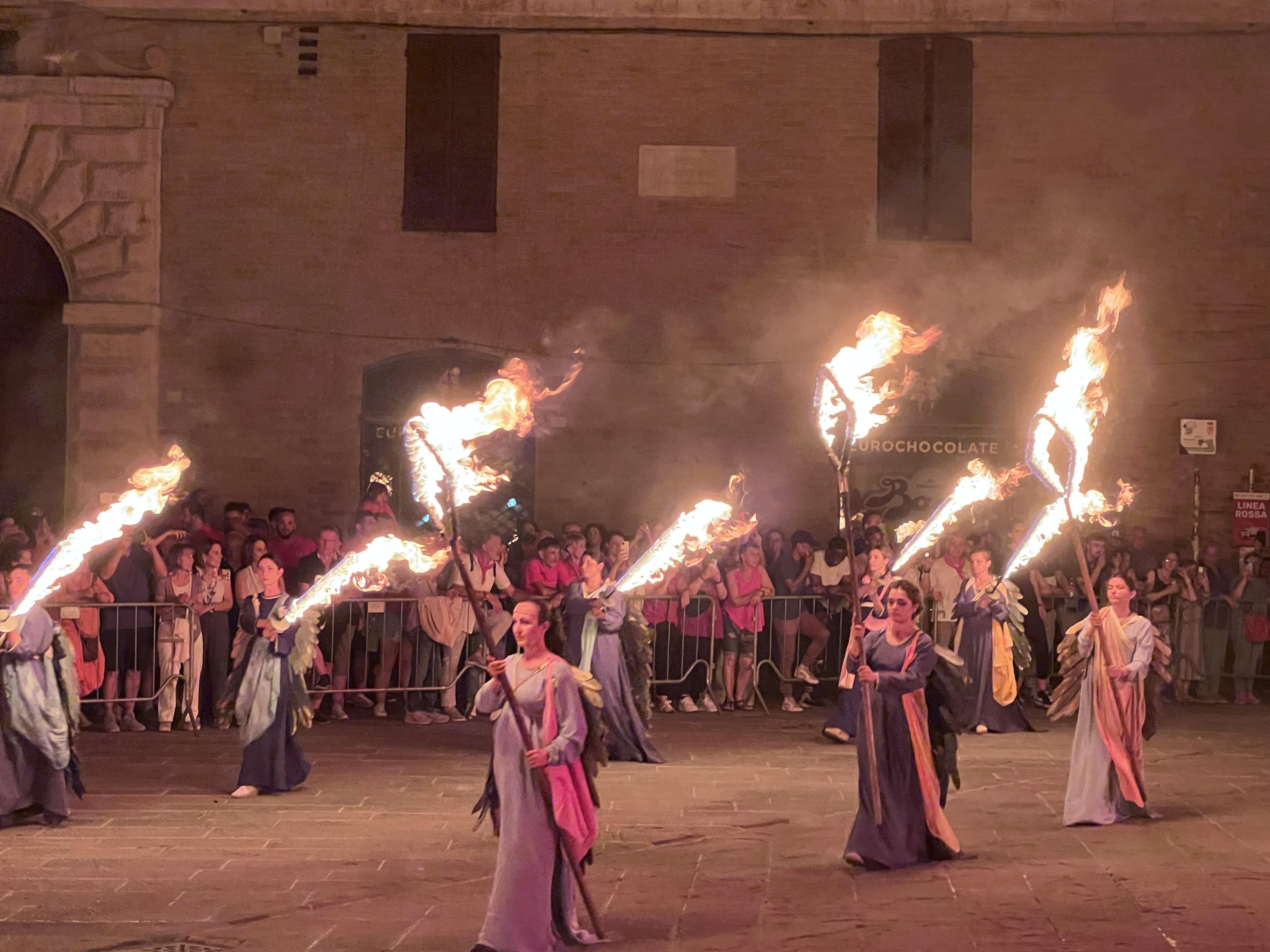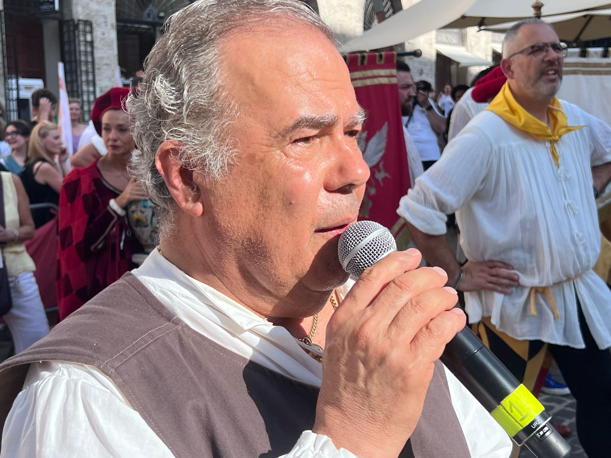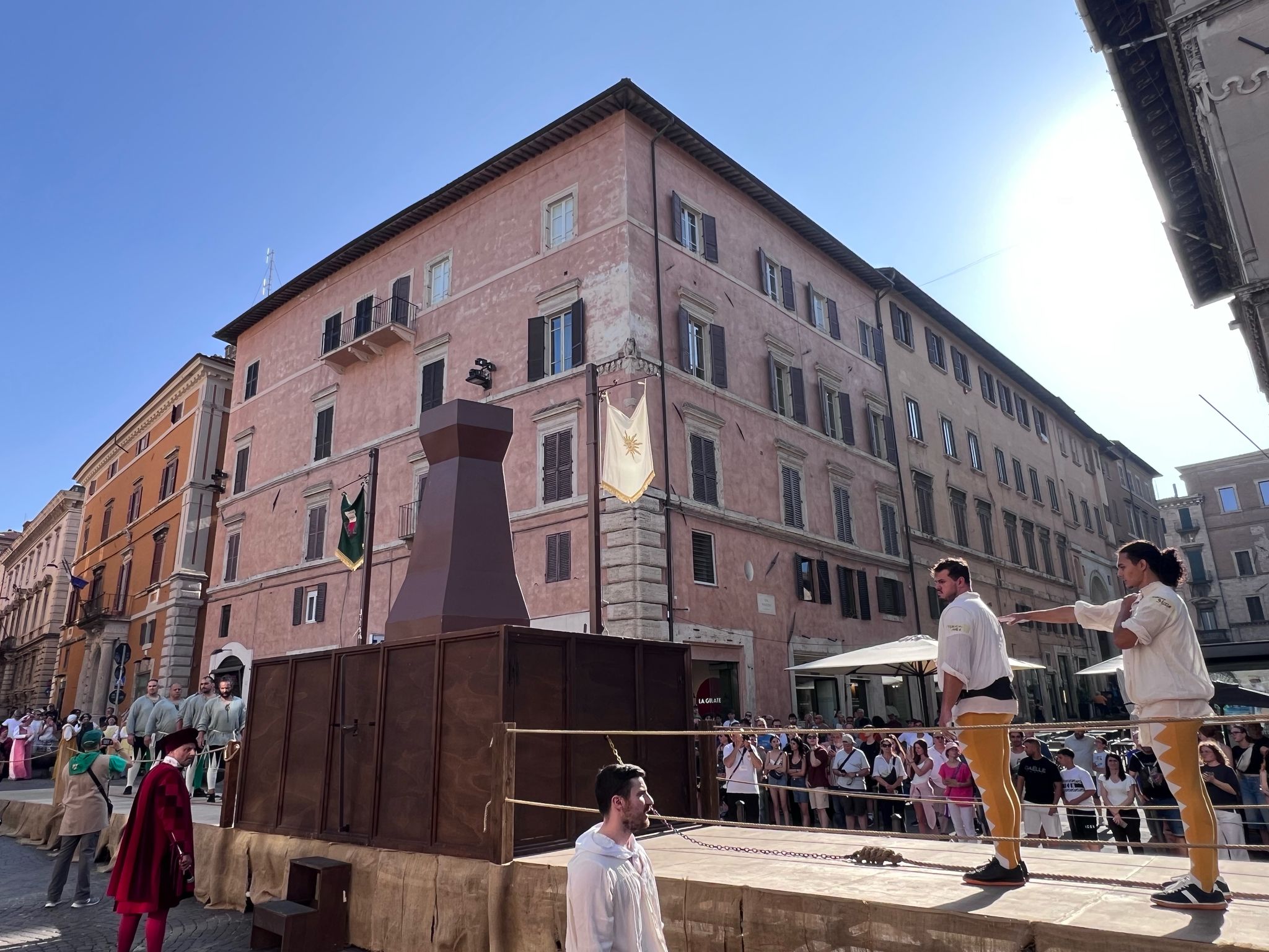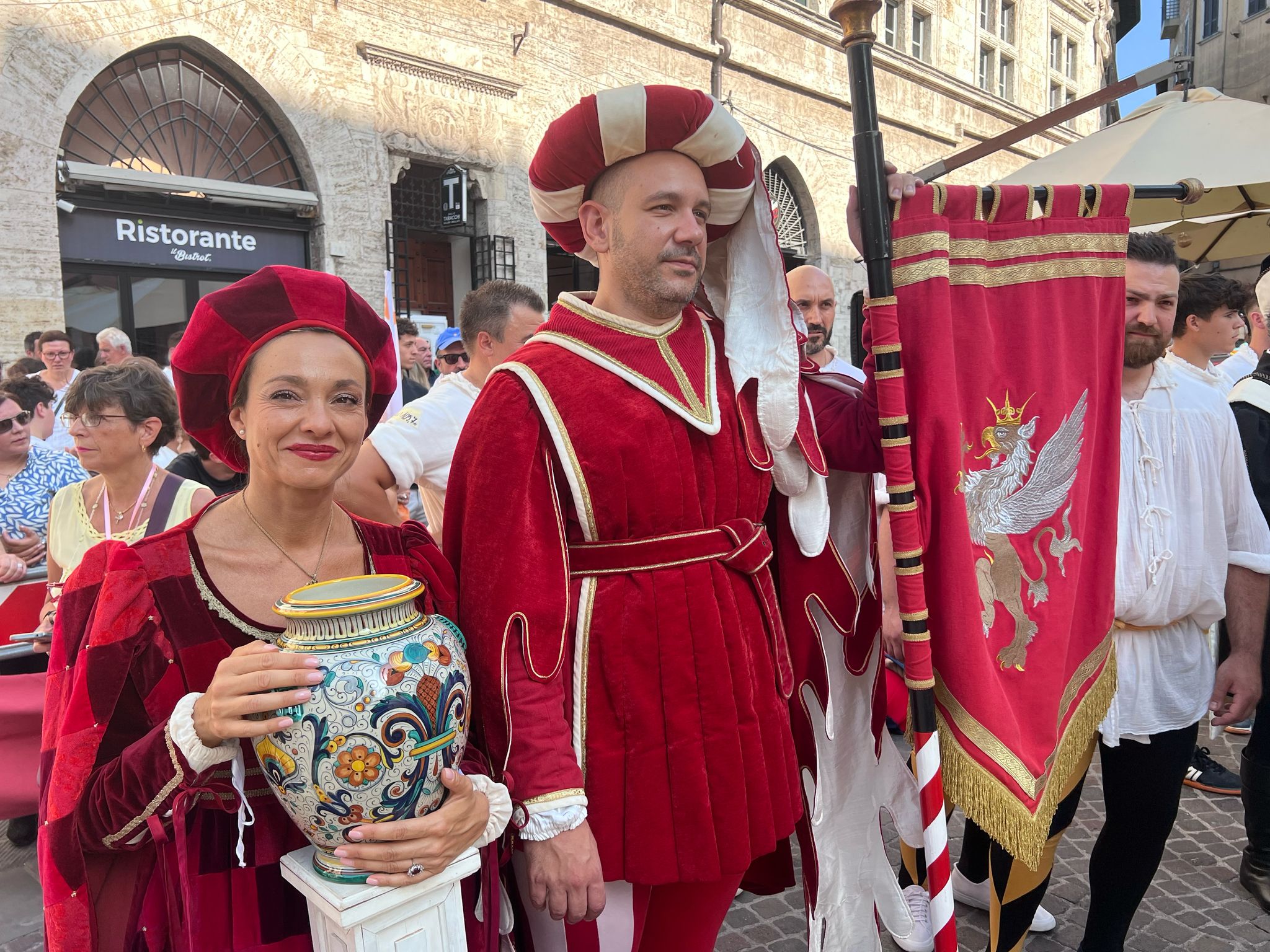 Oggi, domenica, alle 18.45 la Corsa del Drappo premierà la velocità nella staffetta che seguirà Il Gran Corteo Storico, cuore della manifestazione. Anche il Corteo, o meglio l’allegoria che ogni Rione rappresenterà, apporterà punteggio in base ad aderenza storica, interpretazione e scenografia del tema di quest’anno: “Del potere e dei poteri: potere sacro e temporale prima e dopo Braccio”; insieme ai Rioni sfileranno anche le delegazioni ospiti.