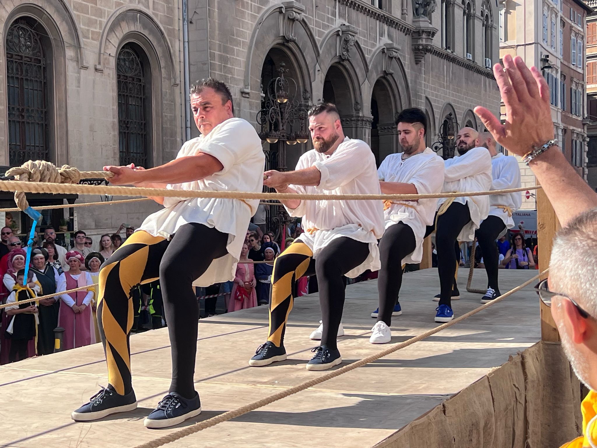 Prosegue la decima edizione di Perugia1416, che sabato ha visto la seconda esaltante gara di forza e resistenza tra gli atleti dei cinque Magnifici Rioni, la Mossa alla Torre vinta dal Magnifico Rione di Porta Eburnea battendo il Magnifico Rione di Porta Sant’Angelo nella finale per il primo e secondo posto. Questa la classifica completa: 1º posto Rione Porta Eburnea; 2º posto Rione Porta Sant’Angelo; 3º posto Rione Porta San Pietro; 4º posto Rione Porta Sole; 5º posto Rione Porta Santa Susanna.