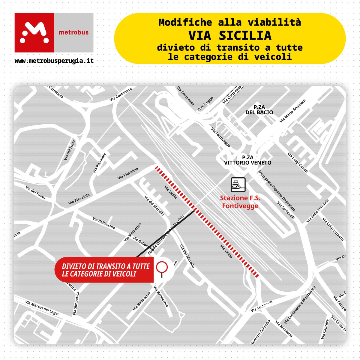 Per la chiusura di via Sicilia sarà presente del personale dell’impresa munito di idonei dispositivi anche notturni di segnalamento stradale (al fine di agevolare il transito di eventuali mezzi di soccorso diretti in Via Sicilia, Piazza Vittorio Veneto, Via Mentana in senso inverso sulla rampa Via Sicilia/Via Settevalli) in: