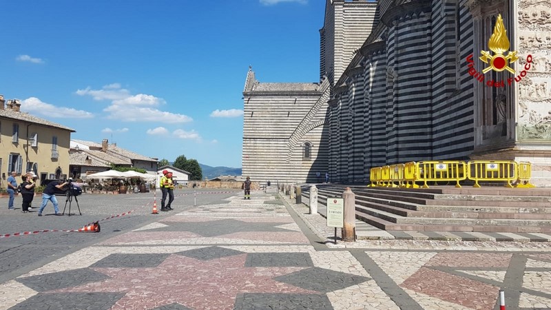 Cade pezzo di cornicione dal duomo di Orvieto, sopralluogo con drone | Foto e video