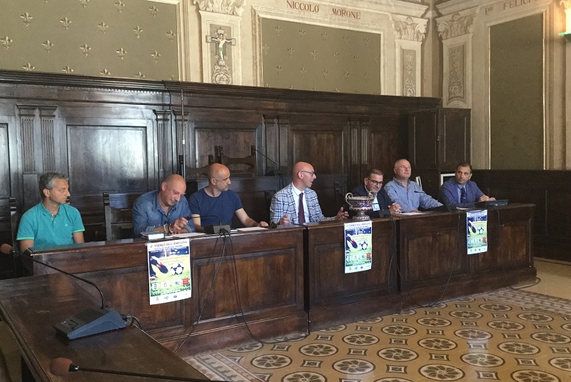 La pregevole iniziativa, ad ingresso libero con offerta, è stata presentata con una conferenza stampa svoltasi oggi (mercoledì 20 giugno), nella Sala Consiliare del Comune, alla quale hanno partecipato il sindaco Massimiliano Presciutti, il vicepresidente F.I.G.C. – L.N.D. Comitato Regionale Umbria Carlo Emili, il presidente dell’Associazione “Gli Amici del Germoglio” Marcello Guidubaldi e i rappresentanti delle quattro squadre partecipanti al torneo, ossia: il dg Roberto Balducci per il GualdoCasacastalda, il presidente Cav. Gianluca Insinga per i Cavalieri al merito della Repubblica Italiana Sezione di Foligno, Gianluca Graciolini, coordinatore Arcisolidarietà e rappresentante della squadra dei rifugiati Africa United e Maurizio Iodice per la compagine dei Gualdesi x Sempre.