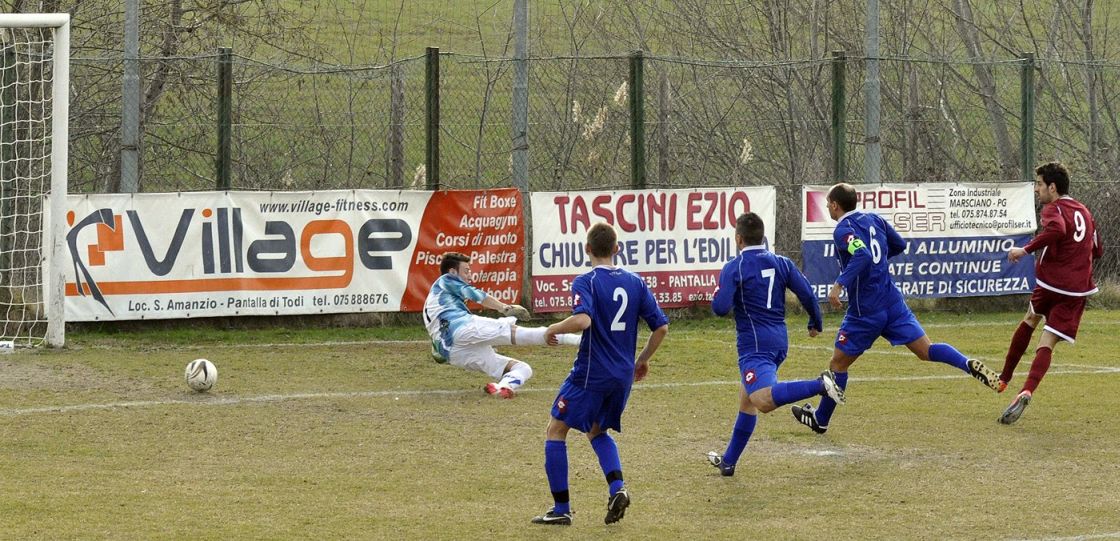 La Clitunno fa di nuovo 1-1 e lascia al Pantalla la possibilità di proseguire con la propria serie di risultati utili che con oggi raggiungono un totale di 14. Inizia forte il Pantalla con Malokay che già al 2'pt viene ottimamente servito da Parsi ma poi indugia nel concludere e lascia che Cucchiaroni vada a respingere la palla in scivolata. Tre minuti dopo è di nuovo Malokay che scatta in velocità dalla metà campo e si porta in avanti superando con maestria il tentativo di chiusura ad opera di Perrone. Il numero 10 di casa mette al centro per Parsi ma Galli riesce ad allontanare. Appena un minuto dopo, al 6', Angelantoni dal limite dall'area azzecca un passaggio filtrante verso Antonini. Grazie anche ad una disattenzione di Galletti, Antonini riesce a portarsi in avanti e infila alle spalle di Todini siglando il vantaggio per la Clitunno.