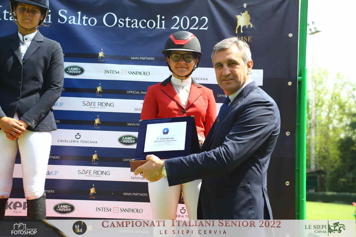 Grande successo per la studentessa di Spoleto Giulia Beddini ai campionati italiani assoluti 2022 di salto ad ostacoli. L’atleta 16enne si è infatti classificata al terzo posto al “Criterium amazzoni” di equitazione che si è tenuto nel fine settimana scorso agli impianti de Le Siepi di Cervia. La spoletina, che ha gareggiato in sella ad Original Pg, appartiene al club ippico Valvasone, seguita dal tecnico Beniamino Capurso.