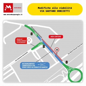 Cantiere Brt, in via Donizetti modifiche alla circolazione dal 22 aprile al 15 maggio.