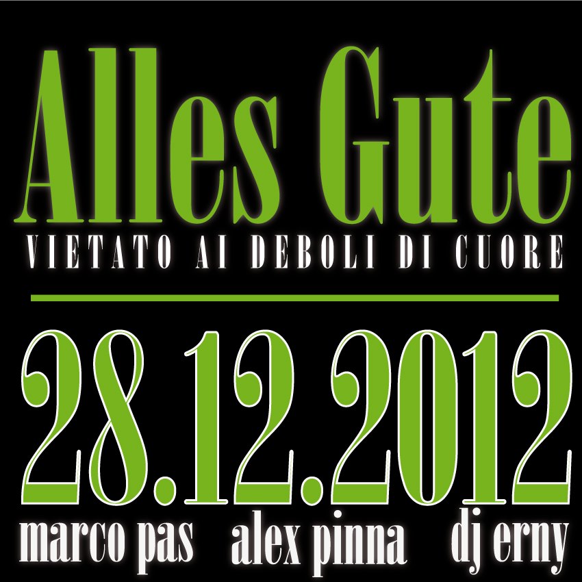La festa tanto attesa sta per avere inizio. Questa sera infatti il gustoso ospiterà Alles Gute, il party vietato ai deboli di cuore. Musica tecno house e ospiti di eccezione che impreziosiranno la console del Gustoso Village in moto sin dalla cena. Una serata particolare, in collaborazione con Boom Booking e Cool Cafè. Quest’ultimo, bar di Via Mameli, zona Borgaccio di Spoleto, ospiterà un aperitivo a partire dalle 18 e poi ci si sposterà al Gustoso per la cena spettacolo che vedrà protagonisti i dj Alex Pinna e Marco Pas (direttamente dal Reverse di Perugia) e special guest il produttore di musica house dj Erny. Una console mai vista a Spoleto, che suonerà fino a notte fonda e della quale tutti potranno godere anche entrando al gustoso dopo cena in modalità del tutto free. Un successo registrato mese dopo mese quello del Gustoso Village, che sin dall'apertura estiva è riuscito a conquistare il pubblico spoletino a non. Una gioia che lo staff vuole condividere festeggiando insieme l'arrivo del 2013. Il Cenone di San Silvestro è tutto esaurito ma sarà possibile brindare entranto gratuitamente dopo cena quando ad allietare i presenti ci sarà musica anni '70 '80! Gustoso Village, Via SS Flaminia, Spoleto.