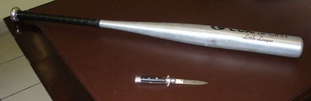 La successiva perquisizione ha consentito di rinvenire e porre sotto sequestro oltre al coltello a serramanico della lunghezza di circa 20 cm, utilizzato per la condotta criminosa, anche una mazza da baseball in acciaio, della lunghezza di circa 90 cm, occultata nel portabagagli.