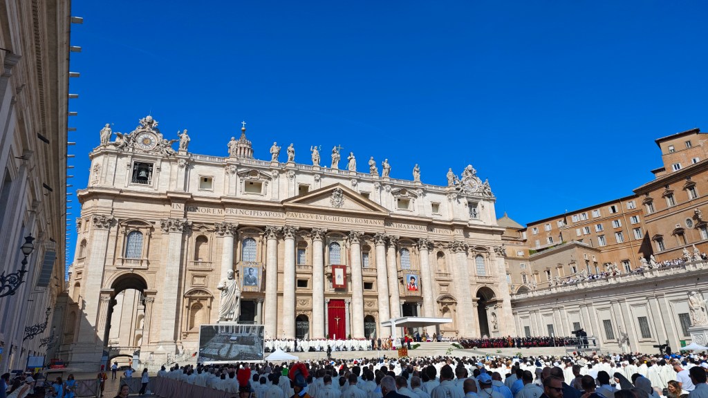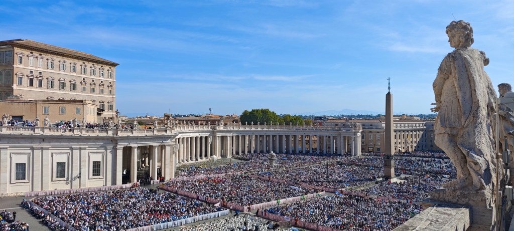 A Roma, la giornata è iniziata con numeri imponenti: già nelle prime ore del mattino oltre 12.000 persone avevano varcato i controlli per prendere posto in Piazza San Pietro. Poco prima della cerimonia, le immagini della folla in preghiera tra il colonnato e via della Conciliazione, raccontano di circa 70.mila fedeli.