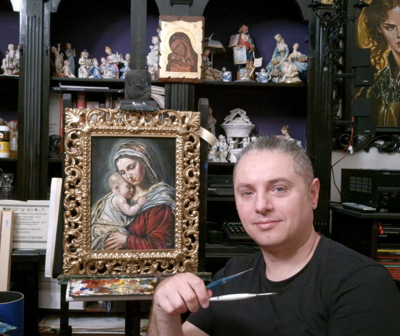 Nel silenzio dorato d’un pomeriggio di giugno, sotto le volte antiche che narrano fede e tempo, un’opera nuova si schiude nel grembo del MuDOP – Museo Diocesano di Oppido Mamertina-Palmi. È un parto d’anima e di mano, un’“Abbraccio Divino” si mostra, respira, accoglie e redime. Con questo gesto alto, Carmelo Fabio D’Antoni affida alla Calabria sacra un tassello vivo del suo cammino d’artista e d’uomo, scolpendo nel tempo una pagina nuova, intrisa di spiritualità e visione. Nel giorno del 7 giugno 2025, tra voci e sguardi raccolti all’interno di una collettiva internazionale, il Museo accoglierà ufficialmente nella propria collezione permanente la Madonna con Bambino nata dalla sensibilità luminosa del maestro. Un evento straordinario, una veglia d’arte e d’anima in cui la pittura si è fatta carne e contemplazione. “Abbraccio Divino” spiega D’Antoni, “è nato da una necessità interiore: rendere visibile la bellezza che salva, l’amore che protegge, la spiritualità che ancora può guidare”. E in queste parole già si legge il cuore del suo fare, che è ben più di una semplice decorazione, è rivelazione. La tela, o meglio, il sacro spazio da essa evocato, si pone come una mirabile sintesi tra la visione medievale dell’icona e un sentire modernissimo, in cui la maternità di Maria è “incarnata”. Lo sguardo della Vergine, colmo di silenziosa presenza accoglie la realtà, la prende tra le braccia, la consola. Il Bambino, Redentore e germoglio, porta nel volto una speranza che sa di attesa e resurrezione. D’Antoni, come unico stilnovista del visibile, attinge alla tradizione, la rifonda. Non rinuncia all’aurea semplicità delle forme sacre, le colora d’intimo ardore. Il suo tratto è filigrana d’affetti, geometria dell’amore. Qui, il divino si manifesta per prossimità: Dio si fa gesto, carezza, umanità. Il MuDOP, che da anni custodisce la fede iconica e il patrimonio devozionale del Sud, accoglie questa nuova opera come un segno del presente che sa ascoltare il passato. In una terra dove le immagini sono pane spirituale, l’“Abbraccio Divino” di Carmelo Fabio D’Antoni non rappresenta un’aggiunta, è una voce che risponde, che integra, che continua. “Sono onorato che quest’opera trovi dimora in un luogo che custodisce la fede, la memoria e l’identità del Sud. Il MuDOP è un presidio culturale straordinario, dove l’arte non è solo esposta, ma vissuta.” Così afferma l’artista, con quella umiltà che è propria dei creatori sinceri. In fondo, chi dipinge la luce si fa tramite, si fa preghiera. E in questa epoca spesso sorda al silenzio, in un tempo che divora immagini ma teme i simboli, l’opera di D’Antoni è un atto di resistenza poetica, un invito alla contemplazione. È pittura che si fa parola sacra, icona che bussa al cuore e interroga. Con l’ingresso nel MuDOP, D’Antoni apre una liturgia di senso, dove ogni spettatore è chiamato a vedere, a sentire, a ricordare che “l’arte, se è vera, è un atto di amore. E l’amore, quando è autentico, cerca sempre casa.”
