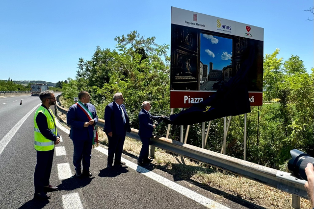 Nella giornata di giovedì 11 luglio, a Todi è stato svelato il primo dei cartelli turistici (formato 4 metri x 3) parte di un primo lotto di sei unità su un totale delle 29 previste a carico di Anas su richiesta della Regione e in accordo con i Comuni di competenza, Todi in primis.