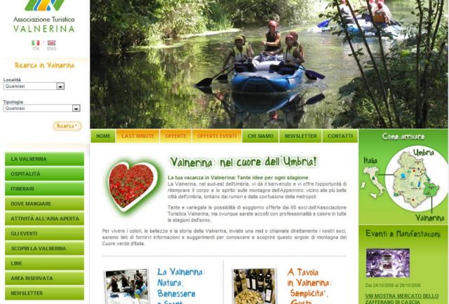 Al navigatore sarà semplice girare in questo portale, all'interno del quale ci sono mappe scaricabili dei luoghi presentati o delle strutture turistiche descritte e aree tematiche attraverso le quali costruire il proprio soggiorno in Valnerina, dai belvedere agli sport da praticare, dai prodotti tipici da degustare agli itinerari da percorrere, dagli eventi da non perdere ai luoghi del sacro da visitare. Il portale, poi, è dotato anche di newsletter e area riservata. La prima consente al navigatore di iscriversi ad una mailing-list e ricevere direttamente nella propria casella email informazioni su eventi, conferenze, mostre e quanto l'Associazione dei Comuni della Valnerina organizza dentro e fuori il territorio. Il secondo strumento offre qualcosa in più, ovvero consente al navigatore di entrare in una comunità virtuale all'interno della quale potrà accedere, gratuitamente, a documenti, immagini fotografiche, brochure, comunicati stampa che potrà anche scaricare nel proprio computer.