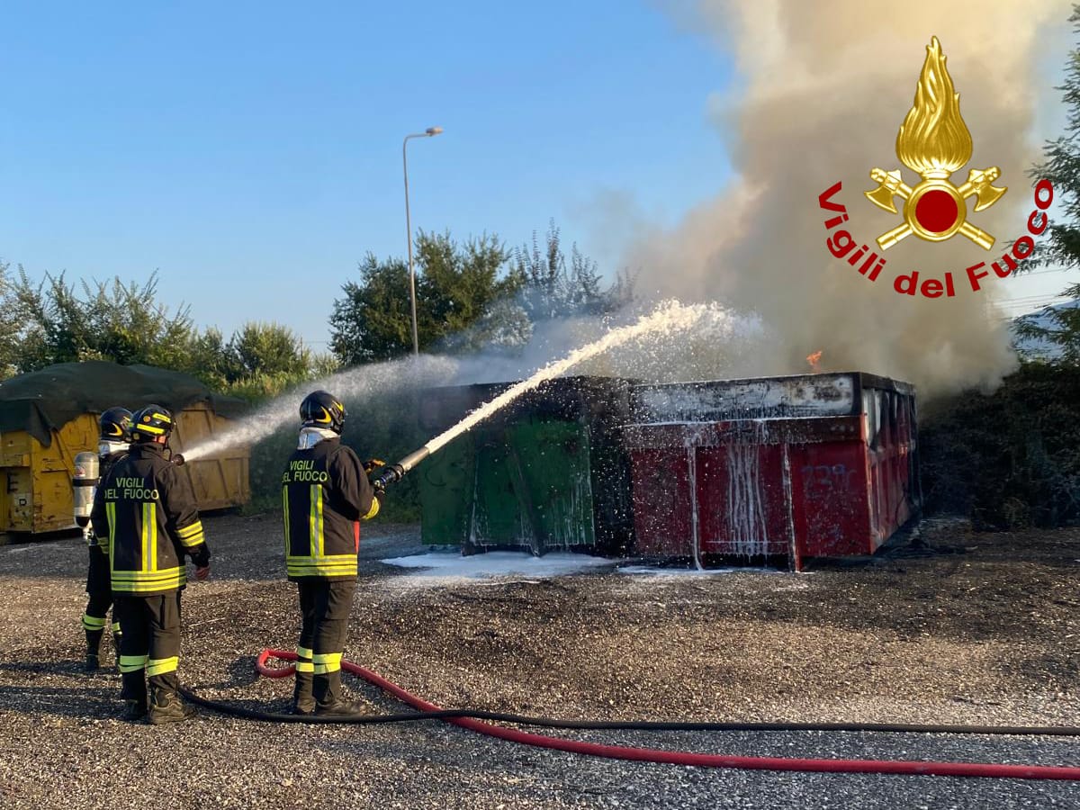 Cassoni in fiamme a Terni, intervento dei vigili del fuoco