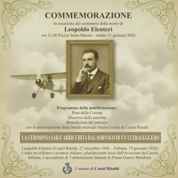 Sabato 31 gennaio alle ore 11.00 in Piazza Santa Marina a Castel Ritaldi si terrà la commemorazione dell’eroe della Prima Guerra Mondiale Leopoldo Eleuteri, alla presenza delle autorità locali e regionali che intendono onorare la memoria di un così illustre concittadino con una cerimonia ufficiale.