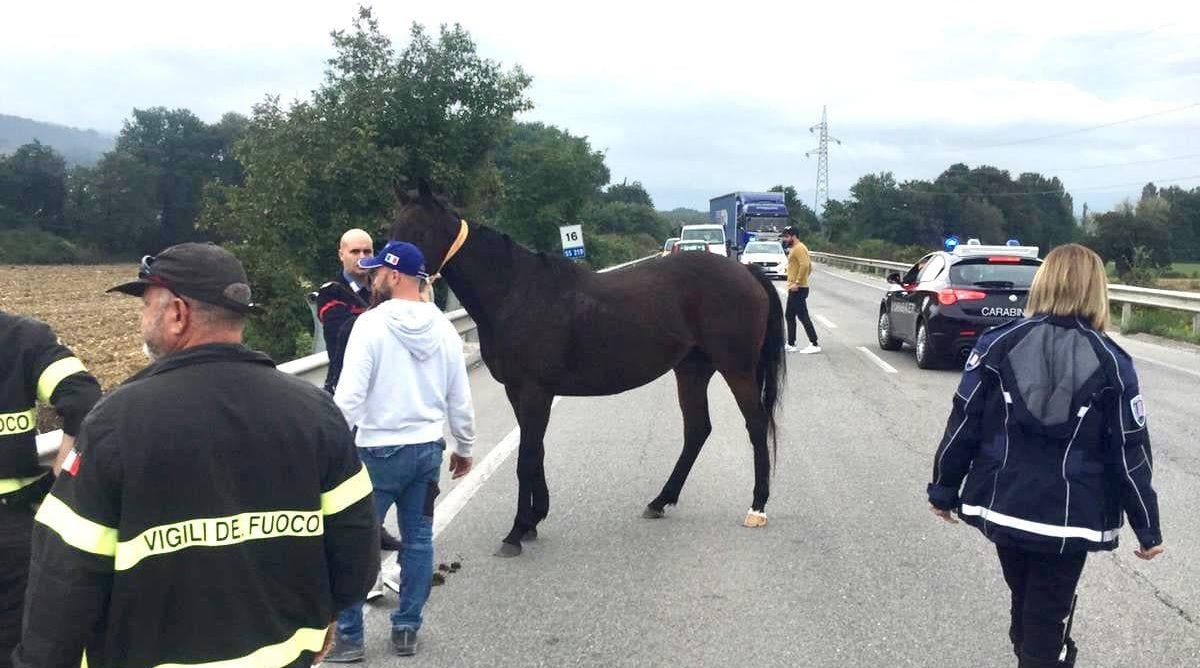 “C’è un cavallo sulla variante!”, recupero con disagi al traffico