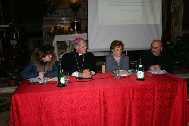 La signora Anna Benedetti, per anni colonna portante della Caritas diocesana, ha ripercorso i quaranta anni dell’organismo pastorale della Chiesa a favore degli ultimi. Fu l’Arcivescovo Giuliano Agresti, che guidò la diocesi dal 1969-1973, a chiedere ad un giovane don Sergio Virgili di fondare la Caritas. Da allora tanta strada è stata fatta, molte persone sono state aiutate, numerose emergenze sono state fronteggiate, decine e decine di giovani sono stati educati. La Caritas di Spoleto-Norcia dal 1971 ad oggi ha avuto tre direttori: don Sergio Virgili, per due anni don Luigi Piccioli, poi ancora don Sergio Virgili e, infine, don Vito Stramaccia attuale direttore. Tra i tanti servizi della Caritas si ricordano: l’impegno e la presenza tra la gente della Campania e della Basilicata colpita dal terremoto del 1980; le raccolte di stracci e carta per recuperare soldi da destinare ai poveri; i primi soggiorni estivi per ragazzi diversamente abili (fu una vera innovazione per Spoleto); la presenza tra i bambini slavi durante la guerra dei Balcani; la casa per ragazze madri di S. Sabino (una delle prime sorte in Italia) e la Mensa della misericordia; la vicinanza alle popolazioni di Sellano e Verchiano durante il terremoto del 1997 che colpì l’Umbria e le Marche; le adozioni a distanza e i gemellaggi con altre Caritas (Brasile, Georgia, India, Terra Santa, Romania ecc…); la formazione degli obiettori di coscienza e degli operatori delle Caritas parrocchiali; la sinergia con le istituzioni; la proficua collaborazione con il Centro di Solidarietà “don Guerrino Rota” e le Suore della Sacra Famiglia di Spoleto; l’apertura della Casa Famiglia OAMI di Baiano di Spoleto; la realizzazione della Fattoria della Misericordia ad Eggi di Spoleto. L’elenco potrebbe certamente continuare, ma la Caritas di Spoleto-Norcia, nel quarantesimo di fondazione, vuole ricordare tutte quelle persone che in questi anni, nel nascondimento, lontano dai riflettori, hanno aiutato fratelli e sorelle in difficoltà.