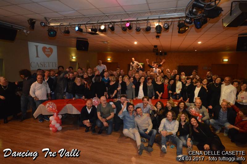 Dopo la cena, intervallata da numerosi brindisi, canti di gioia e sfottò, il Rione Casette ha autocelebrato la sua voglia di divertimento onorando da par suo la pista da ballo del Dancing Tre Valli e affidando la console al meglio del meglio della propria espressione artistica in campo musicale: quattro famosi dj e un super vocalist tutti rigorosamente “made in Casette”. Dj Sacha Meriggioli, Dj Wappa, Dj Lele , Dj Roberto Valentini e Jimmy the Voice hanno “suonato” la loro musica, protagonista dei successi cittadini, regionali e in alcuni casi anche internazionali, degli ultimi 30 anni del mondo della notte (guarda il video su Facebook).