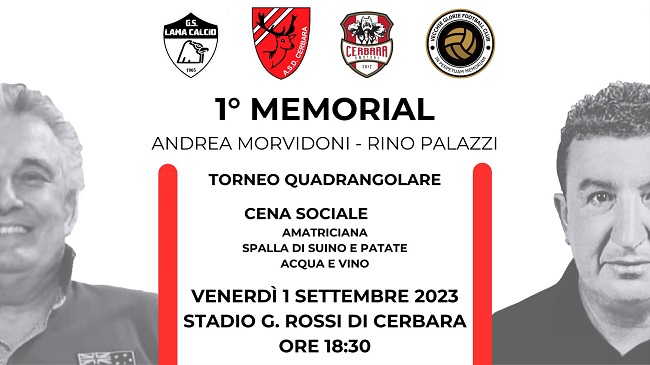 Primo memorial in ricordo di Andrea Morvidoni e Rino Palazzi, che venerdì 1 settembre, ricorderà con un torneo quadrangolare due colonne storiche del Cerbara Calcio.