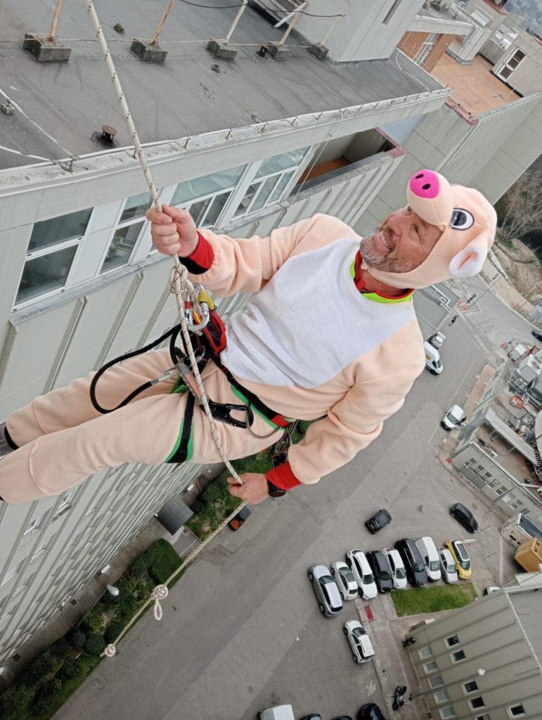 I volontari, con indosso dei costumi divertenti e colorati a forma di animale, si sono calati da uno degli edifici della struttura ospedaliera per poi entrare nelle degenze e salutare i piccoli pazienti e i loro genitori.
