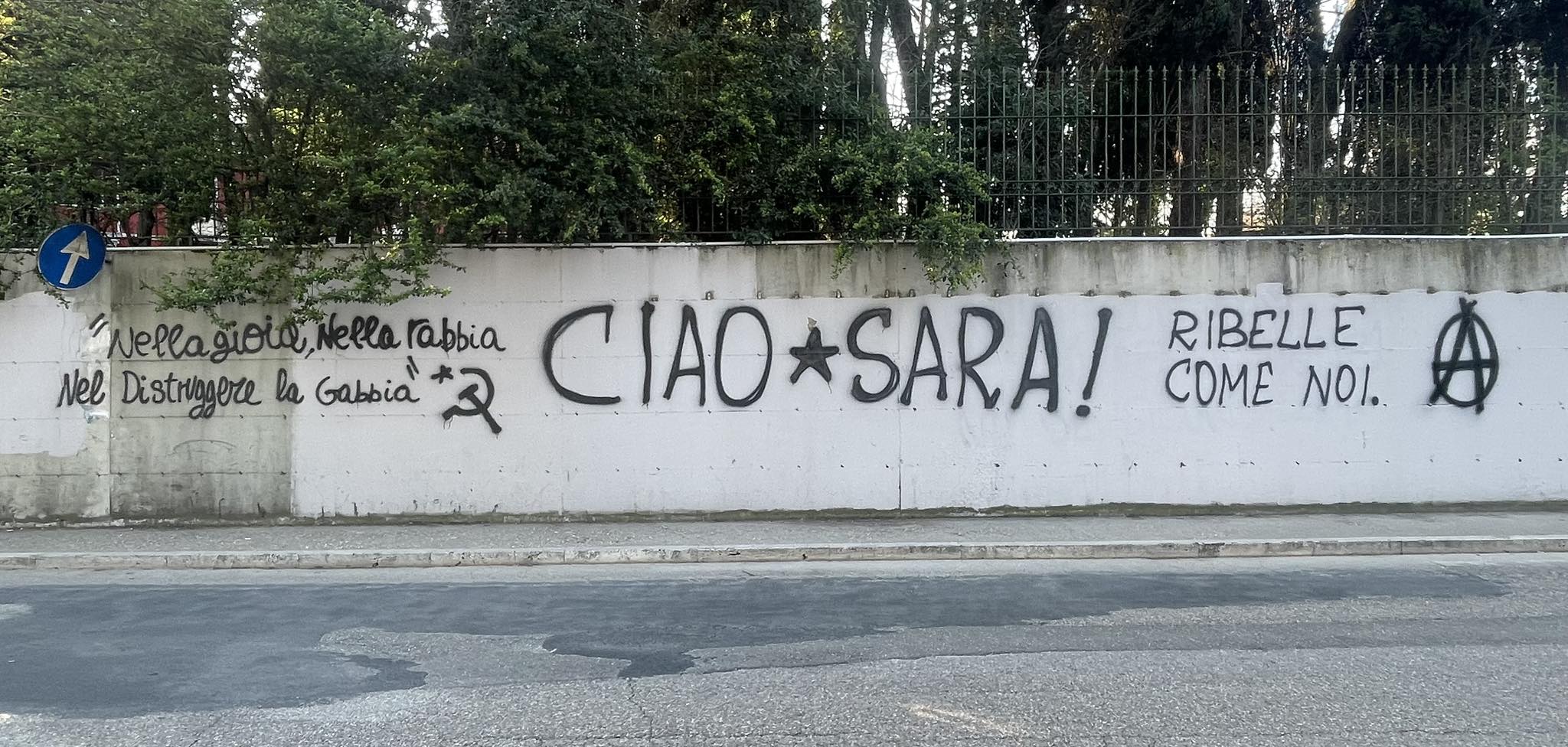 “Nella gioia, nella rabbia e nel distruggere la gabbia. Ciao Sara, ribelle come noi“. La Digos indaga anche a Perugia sulla scritta comparsa nella notte tra sabato e domenica su un muro lungo via Pievaiola, “siglata” con la “A” cerchiata del movimento anarchico, insieme alla falce e al martello e alla stella. Una scritta che si accompagna a messaggi di solidarietà, vicinanza e rivendicazioni che sono comparse sui social e in rete, dopo la morte di Sara Ardizzone, trovata senza vita insieme al compagno Alessandro Mercogliano nel rudere di un casolare nel parco degli acquedotti di Roma. Morti dovute allo scoppio di un ordigno rudimentale che i due, presumibilmente, stavano confezionando, non si sa ancora per quale obiettivo e con quali finalità (se dimostrativa, secondo il tradizionale modus operandi che ha contraddistinto il gruppo anarchico negli ultimi anni, oppure allo scopo di colpire qualcuno).