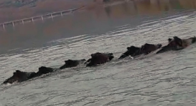 Decine di cinghiali adulti e giovani – sarebbero stati poco meno di trenta – si è lanciata in un’imprevista traversata a nuoto delle acque dell’invaso. Gli esemplari, avvistati inizialmente da alcuni osservatori sulla sponda occidentale, sarebbero entrati in acqua dalla parte del muro della diga (zona Caprese), puntando decisi verso la riva opposta in zona Tizzano.