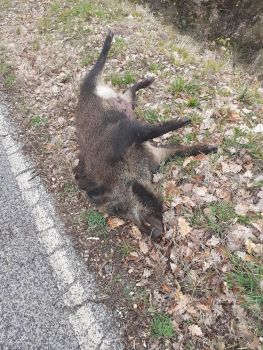 Auto distrutte e carcasse di cinghiali che restano a bordo strada per giorni, in attesa che vengano rimosse dalle autorità sanitarie secondo il protocollo contro la peste suina africana (Psa).