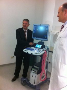 L’assocazione Amici del Cuore ha donato una sonda ecografica transesofagea tridimensionale di ultima generazione che completa il progetto di aggiornamento tecnologico avviato lo scorso anno con la donazione realizzata in collaborazione con Matty e Co., di un sistema ecocardiografico ad ultrasuoni all’avanguardia (l’ECO GE Vivid E9) dai molteplici impieghi nell’ambito delle cardiopatie ischemiche e congenite e nello scompenso cardiaco cronico. Utilizzata attualmente solo da pochissimi altri centri cardiologici italiani, la nuova sonda (ECO 3D / transesofagea) rappresenta la tecnologia più avanzata per lo studio della morfologia e della funzione cardiaca e per la diagnosi delle malattie cardiovascolari. Con l'introduzione della sonda nell’esofago, previa sedazione ed anestesia locale del cavo faringeo, si potrà studiare il cuore con una tecnica che permette di osservare tutte le strutture cardiache in una “spazialità tridimensionale”, come viene osservata dal cardiochirurgo, e di fare un'analisi in tempo reale. Immagazzinate in un sistema di archiviazione digitale, le immagini possono essere utilizzate anche per analisi successive all'esame.