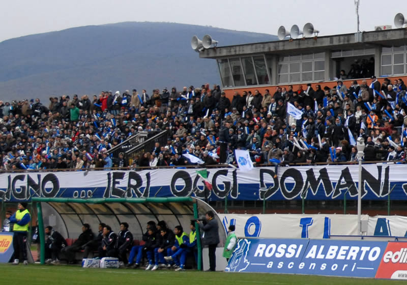 Giornata da incubo, quella odierna, per il Città di Foligno. La Sangiovannese, sotto per ben due volte, si porta via la posta piena dal “Blasone”, imponendosi per 3-2 proprio all’ultimo secondo. I Falchetti cominciano benissimo portandosi in vantaggio con il solito Di Paola (complice la papera di Errico) al 22′. Il pareggio dei toscani arriva al 40′ con un bel tiro di Romanelli (il migliore dei suoi) dal limite. Ad inizio ripresa Luparini conquista un calcio di rigore trasformato al 50′ ancora da Di Paola, al suo ottavo gol in campionato. Otto minuti dopo, al 58′, la Sangiovannese perviene ancora al pareggio con il colpo di testa di Invernizzi. L’attaccante dei toscani sigla poi, al 93′, sempre di testa, il gol della beffa che sconfigge i Falchetti.