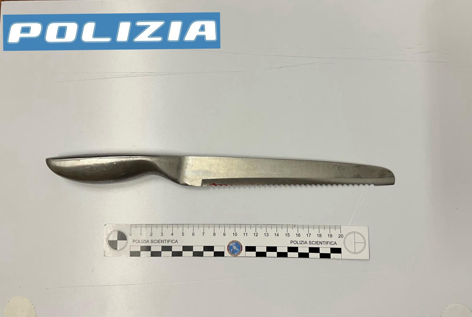Dopo aver separato le parti, i poliziotti hanno sentito in merito la donna, la quale ha riferito di aver avuto una violenta lite con il marito che, nell’occorso, l’aveva colpita violentemente al corpo, anche con un bastone, impedendole di uscire dall’abitazione e minacciandola con un grosso coltello da cucina.