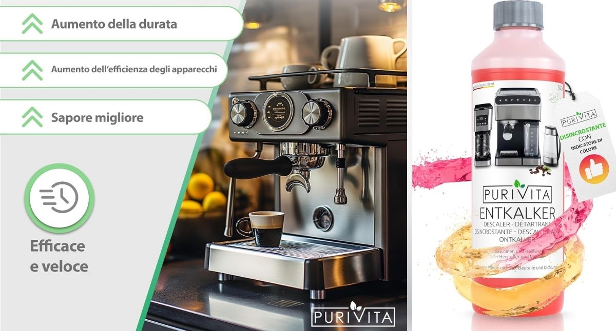 Non aspettare che il calcare rovini il tuo espresso: aggiungi subito il PURIVITA® Decalcificante Universale per Macchine da Caffè al carrello su Amazon a 5,99 €. Clicca qui per approfittare dell’offerta e riceverlo con spedizione rapida Prime: