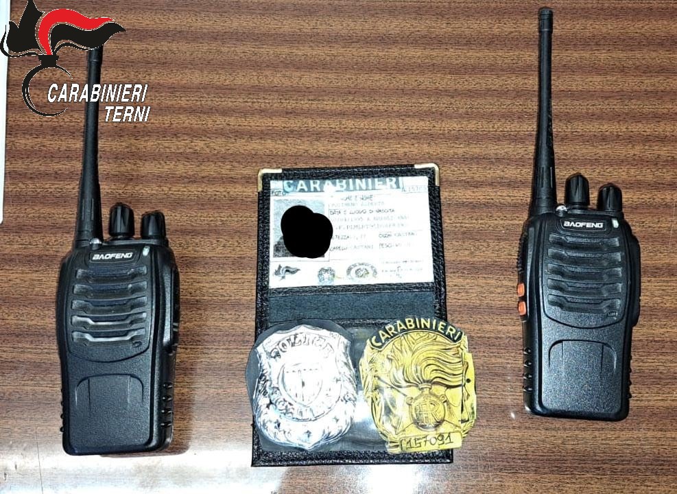 Erano presumibilmente pronti a truffare qualcuno i due uomini di origini campane fermati a Terni con un falso distintivo dei carabinieri dai veri militari dell’Arma e denunciati.
