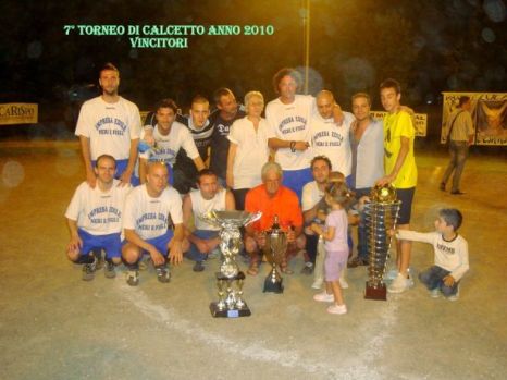 Si e' concluso il VII° Memorial Daniele Bacchettini e il I° Memorial Luca Neri torneo che ha riscosso un gran successo come le passate edizioni. 15 sono le squadre che si sono date battaglia sul campo dell'associazione “Noi e il nostro Quartiere” , torneo organizzato da Massimo Leonardi presidente dell' associazione. La finale del 3° e 4° posto ha visto vincere dopo i tempi regolamentari e supplementari, ai calci di rigore, la formazione della D & Off road Car Sound nei confronti dell'agguerrita Sole Luna Cafe' per 5 a 4 mentre l'attesissima finale del 1° e 2° posto vedeva di fronte le squadre della Luca Neri contro il Bar Blue Rose. Dopo un primo tempo in cui il Blue Rose sembrava far suo il torneo, ecco che la Luca Neri presa per mano da Falsone Aris complice di una splendita tripletta portava la squadra sul 4 – 2 e andava a vincere il torneo tanto ambito. Nella cerimonia finale sono stati premiati oltre alle 4 squadre finaliste anche il miglior portiere con solo 16 goal subiti, Pucciatti Riccardo della sole luna cafe' e il capocannoniere Marcello De Marchi con 23 goal del Ristorante 2 Ponti, infine la Coppa Disciplina e' stata consegnata alla squadra della Protezione Civile di Spoleto per la propria correttezza e serieta' con cui hanno affrontato il torneo. Un numeroso pubblico ha contribuito alla splendida serata finale, terminata poi con ottima porchetta e vino offerta dalle famiglie Bacchettini e Neri. Si ringrazia inoltre l'associazione Noi e il nostro Quartiere per l'ottima riuscita del torneo. Appuntamento per il prossimo anno.