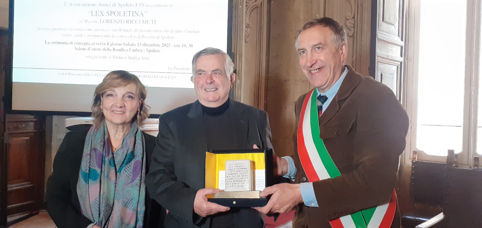 La Lex Spoletina 2025 è stata consegnata questa mattina, sabato 13 dicembre 2025, al Maestro Lorenzo Ricci Muti “per aver promosso la formazione artistica e intellettuale di giovani musicisti di tutto il mondo, valorizzando e promuovendo la conoscenza della Città di Spoleto”.
