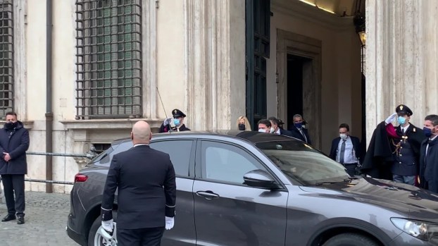 Il premier uscente Giuseppe Conte lascia la sede del Governo dopo avere ricevuto gli onori militari e un lungo applauso da parte dei dipendenti. Ad attenderlo all’uscita una folla di sostenitori.