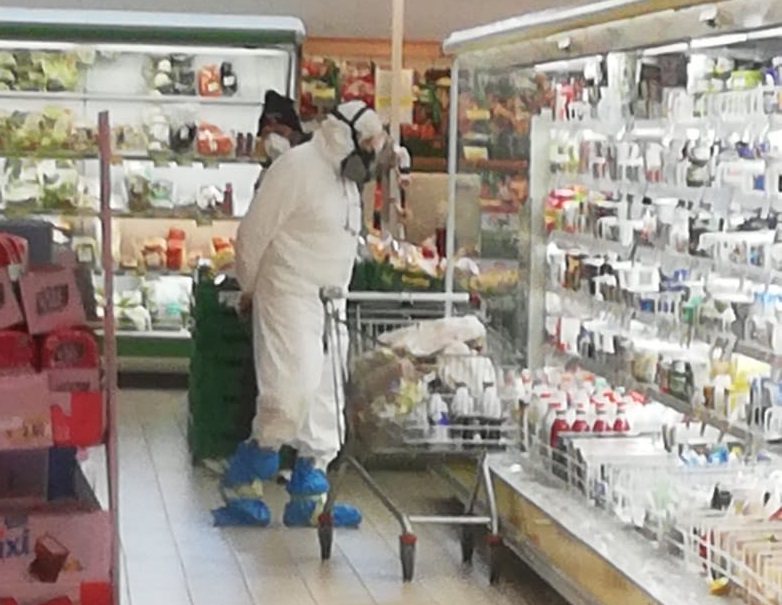 Ma c’è anche chi non si accontenta delle mascherine donate all’ingresso dei supermercati. E così, per andare a fare la spesa a Tavernelle, si è presentato con una maschera per la verniciatira, occhialoni protettivi, guanti, una tuta e buste di plastica come copriscarpe, il tutto sigillato con il nastro adesivo.
