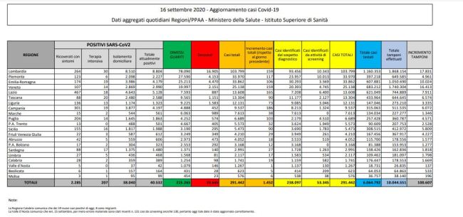 Il totale dei dimessi/guariti è di 215.265 (+620), mentre il totale degli attuali positivi è di 40.532 (+820). Attualmente sono 2.285 i ricoverati con sintomi, di questi 207 si trovano in terapia intensiva, mentre in isolamento domiciliare ci sono 38.040 persone.