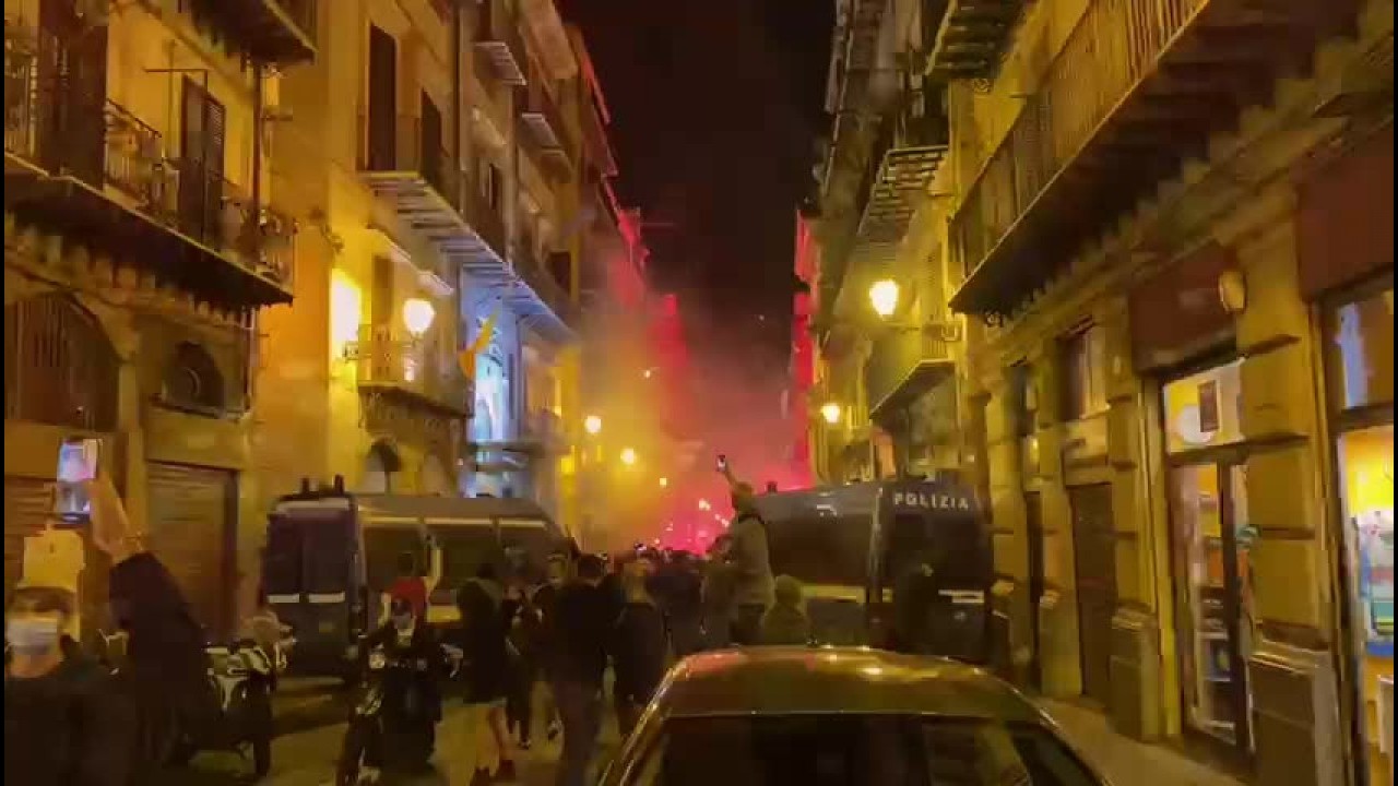 [videojs_video url="https://video.italpress.com/play/mp4/video/kjg1pme4xyo23gvz9ov760a3"] Fumogeni, bombe carta e petardi ai 4 canti a Palermo nel corso della manifestazione contro le restrizioni prese dal governo per contrastare il coronavirus. mra/pc/red