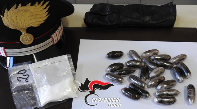 La mirata attività di monitoraggio delle principali vie di comunicazione del territorio svolta dai reparti dell’Arma del Comando Provinciale di Terni per intercettare i corrieri della droga, che è una delle tante messe in campo per portare avanti un’efficace azione di contrasto al consumo e spaccio di sostanze stupefacenti, ha portato all’arresto di un nordafricano che trasportava hashish e cocaina.