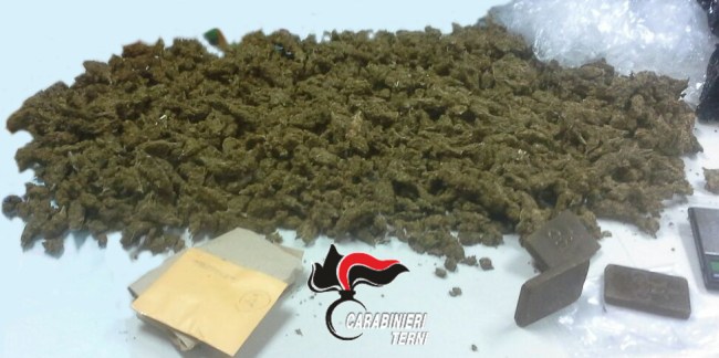 Tre etti di hashish erano nascosti nella casa a Terni per un totale di 8mila dosi. Con questa operazione il maggiore Basilio saluta la compagnia carabinieri Amelia